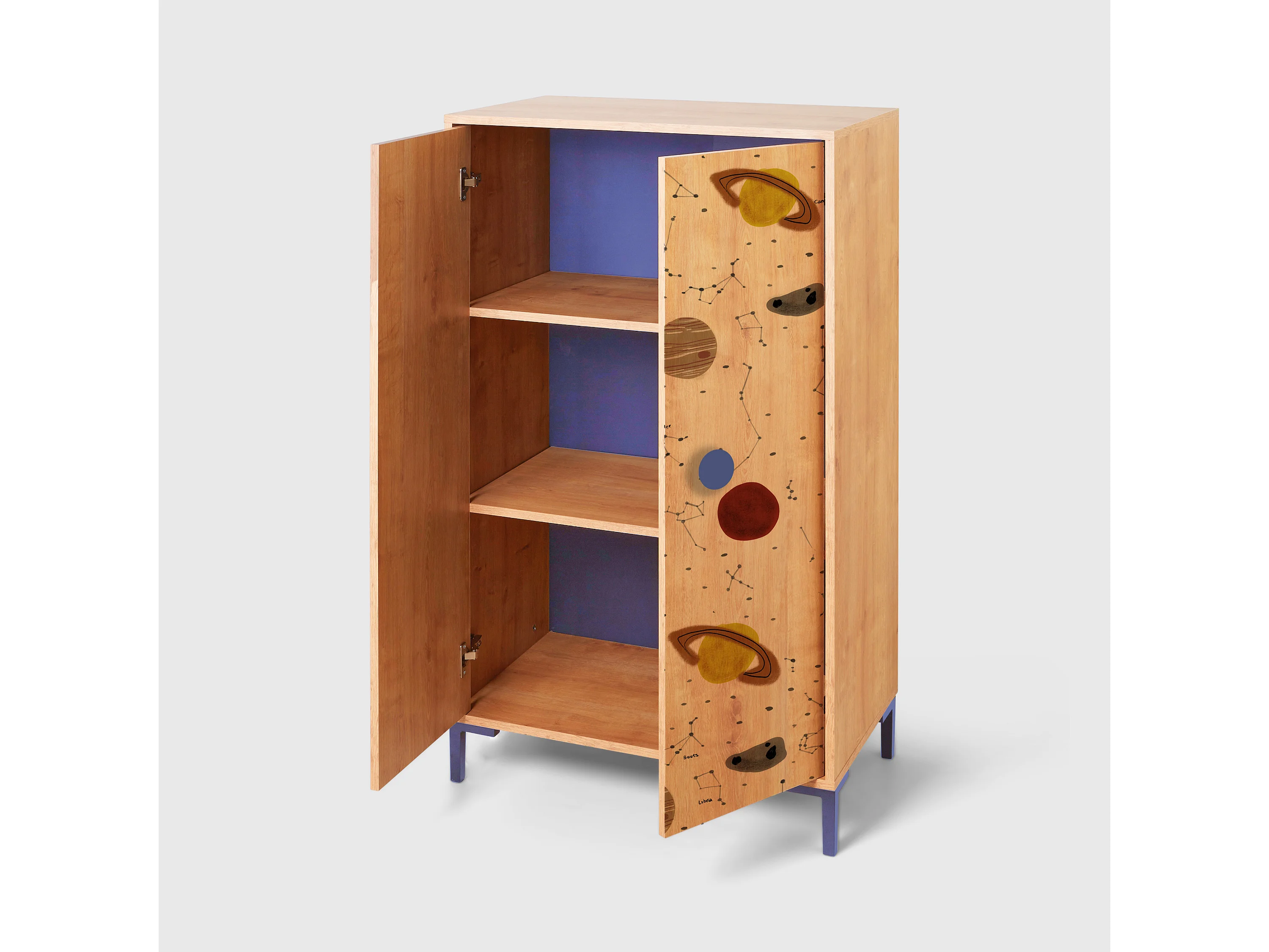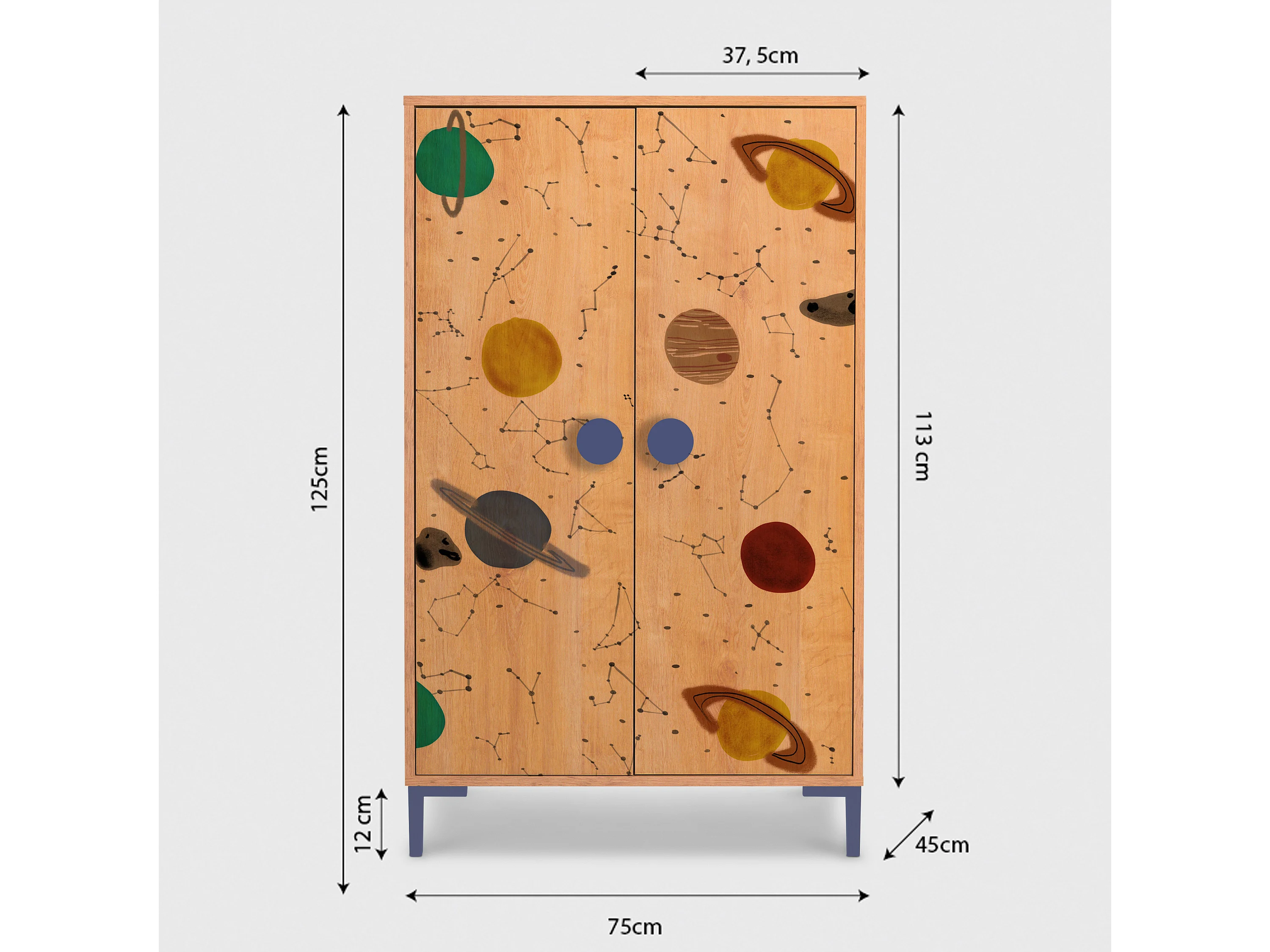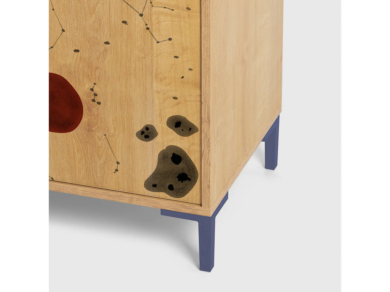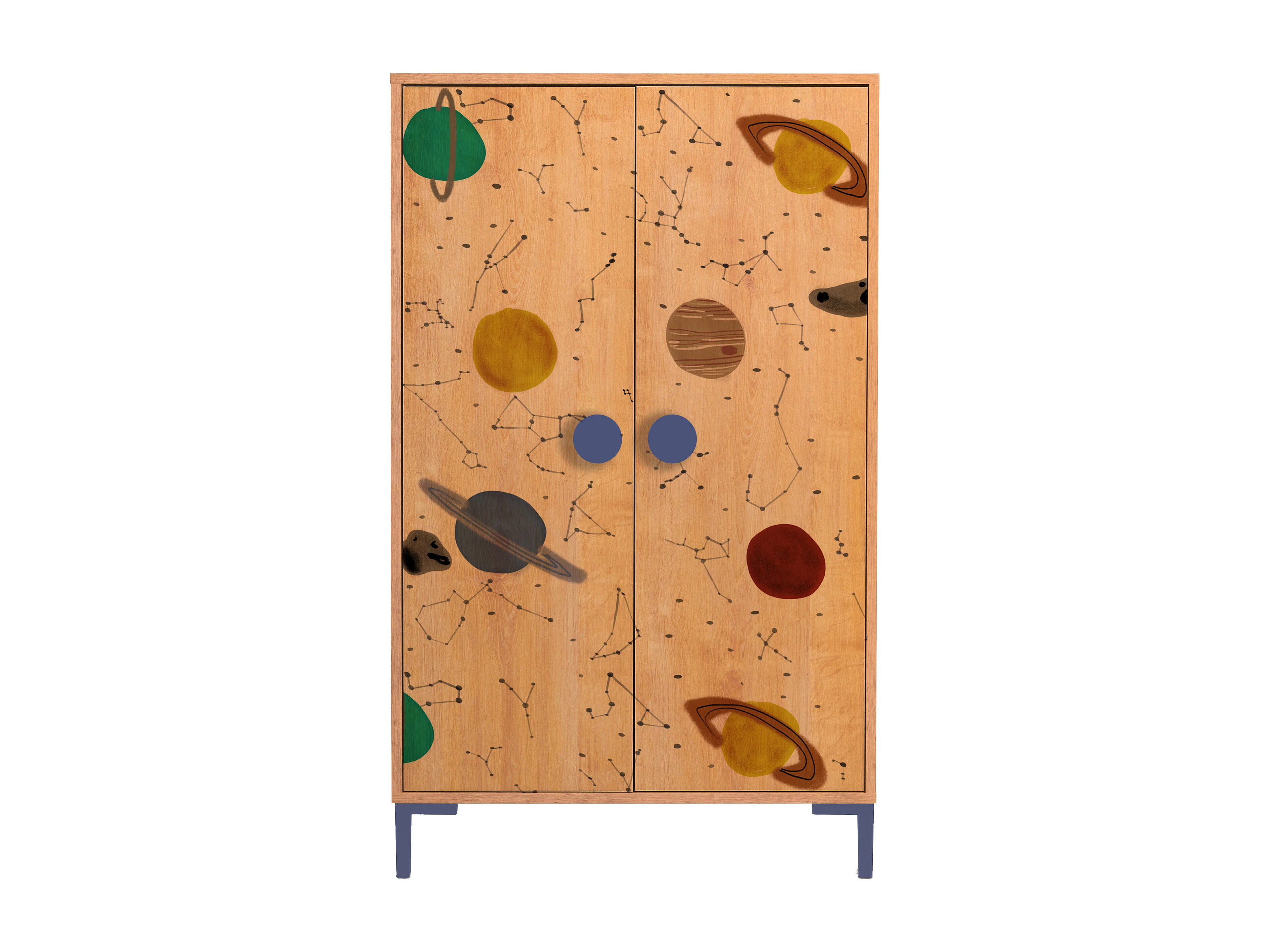 2-deurs kast in eikenkleur met ruimteprint.