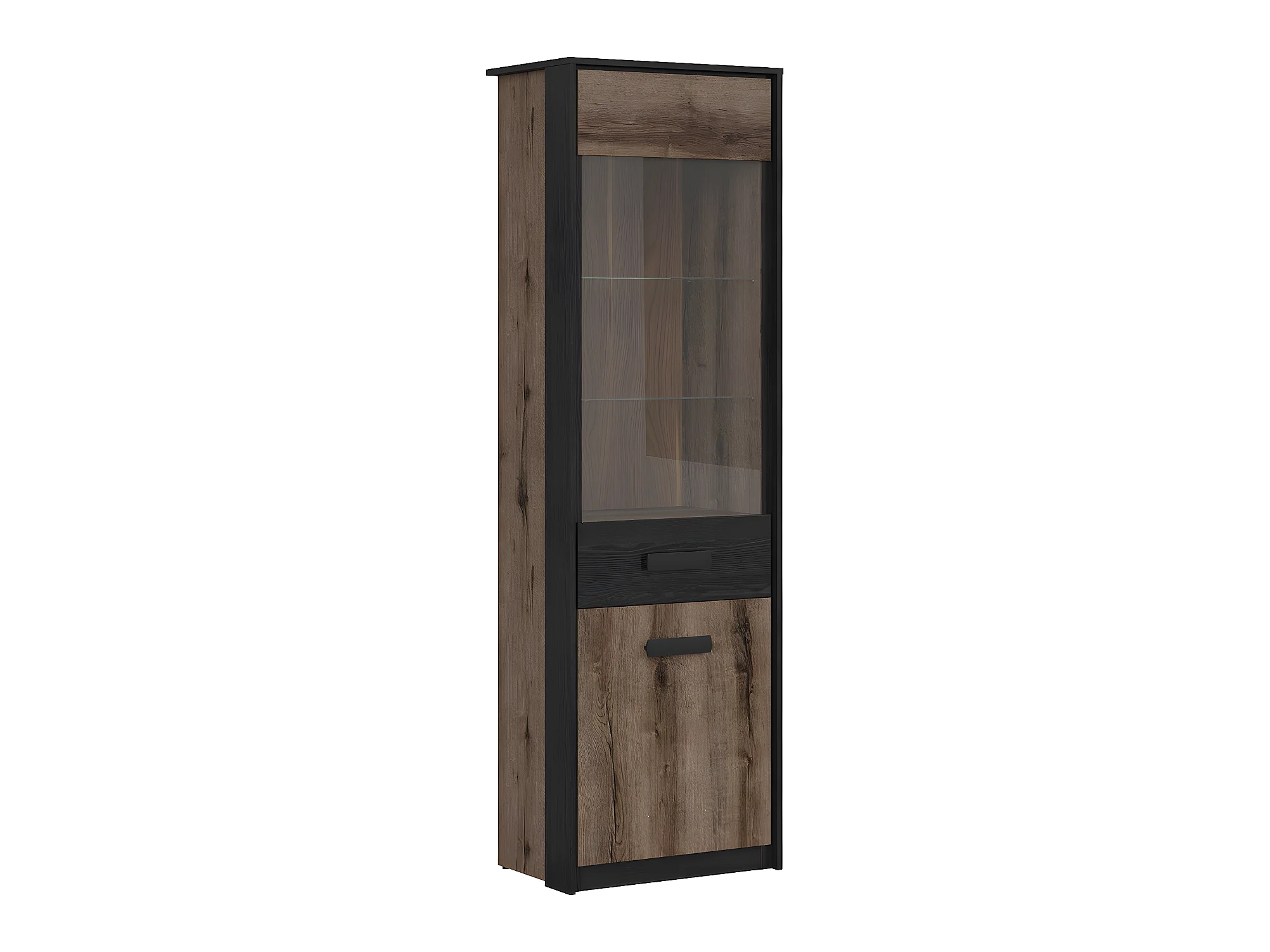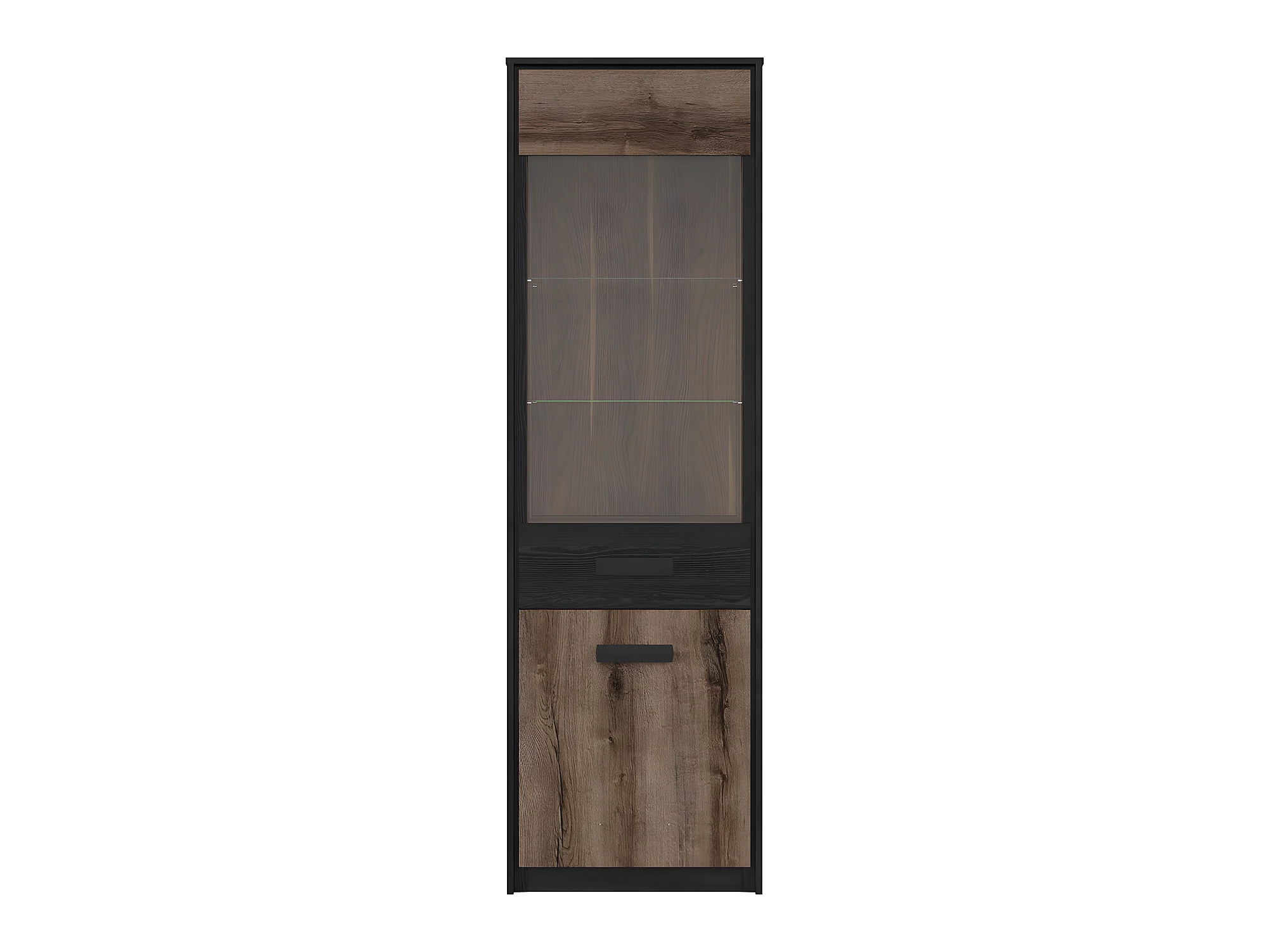 Glora 1-deurs vitrinekast, Zwart en Hout