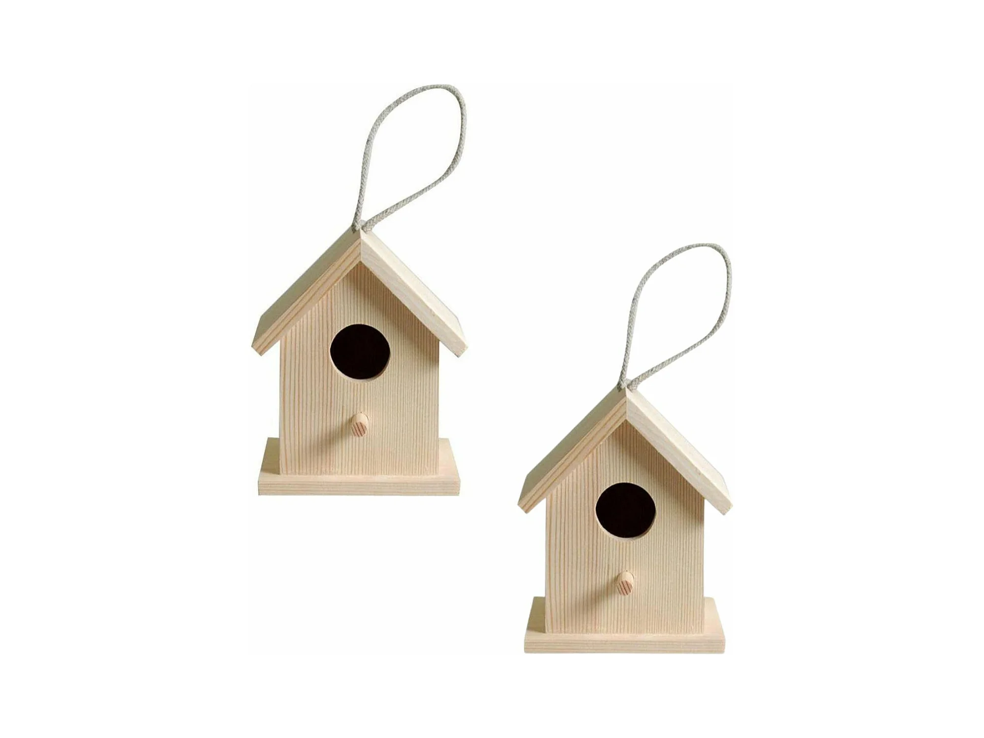 2 houten hangende vogelhuisjes 13 x 10 x 8,3 cm