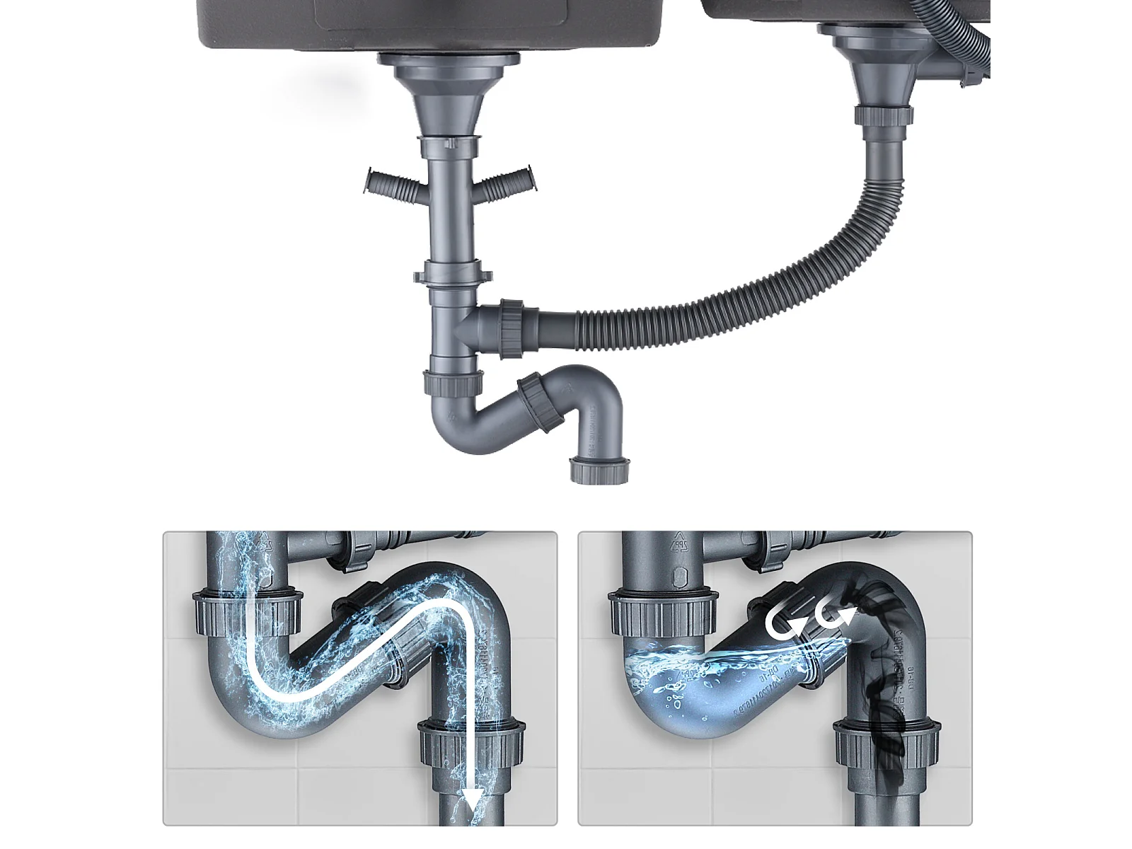 2 in 1 Aanrecht 2 Bakken 75x45x19cm, Inbouw/ Opzetbaar met Zeepdispenser + Flexibele Keukenkraan Hoge Uitloop Draaibaar
