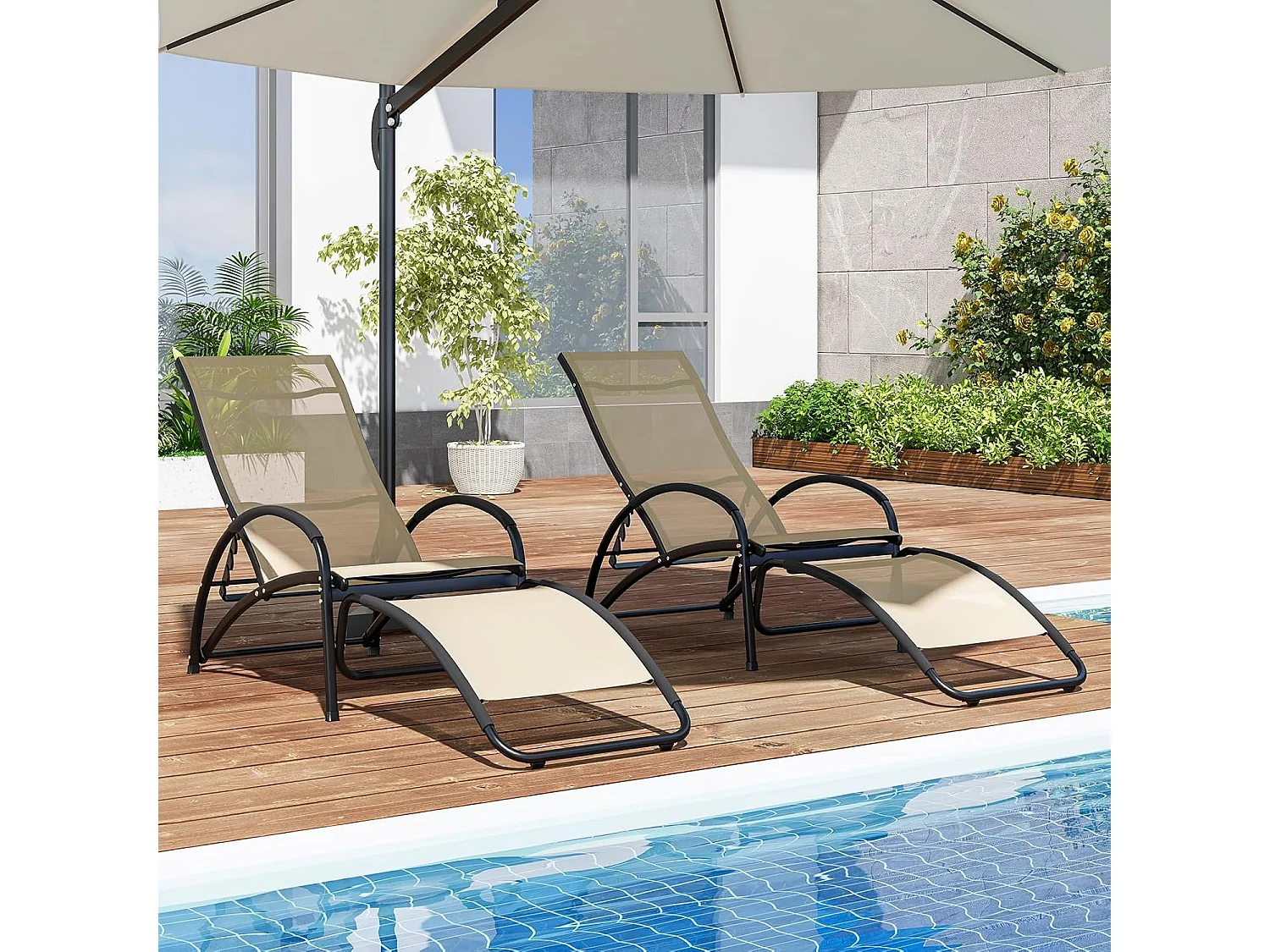 Ligbed set 2 ligstoelen metaal "Farniente" - Beige - lichtbruin