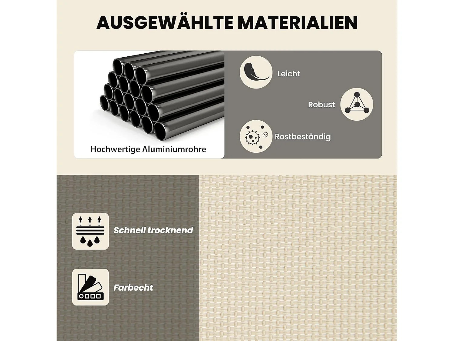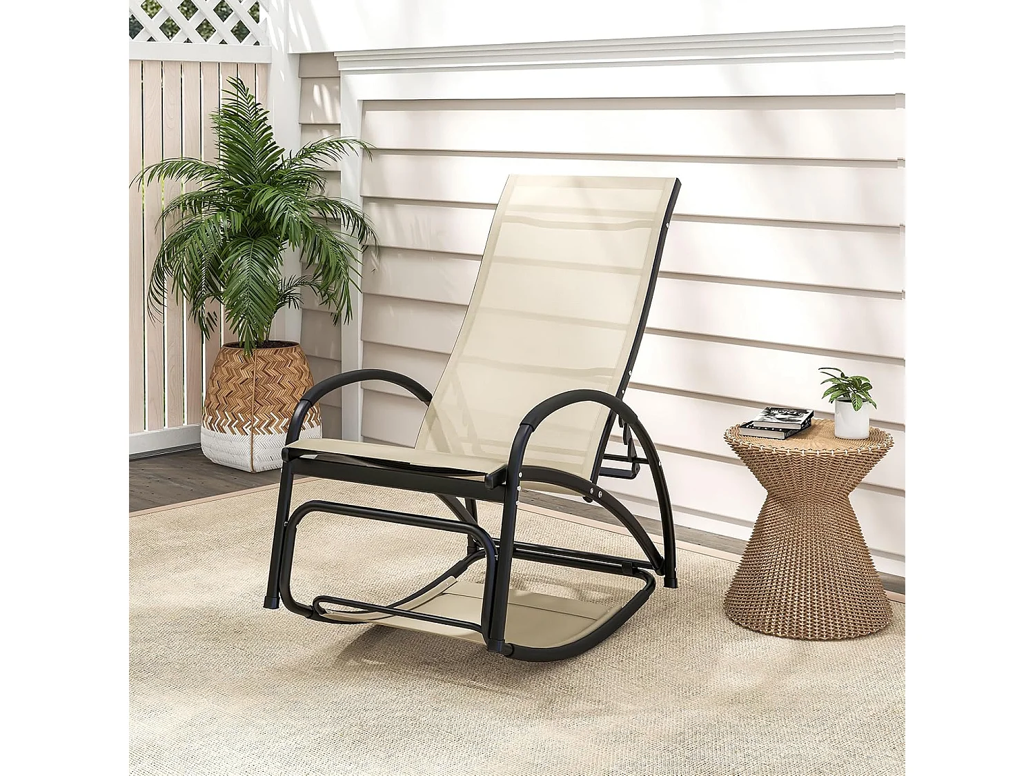 2-in-1 zonnestoel, converteerbare schommelstoel met verstelbare rugleuning en gebogen armleuningen,ligstoel voor terras, tuin, zwembad (beige)ZB33837