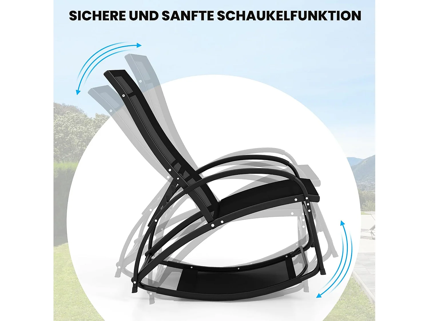 2-in-1 zonnestoel, converteerbare schommelstoel met verstelbare rugleuning en gebogen armleuningen, ligstoel voor terras, tuin, zwembad (zwart)ZB33837