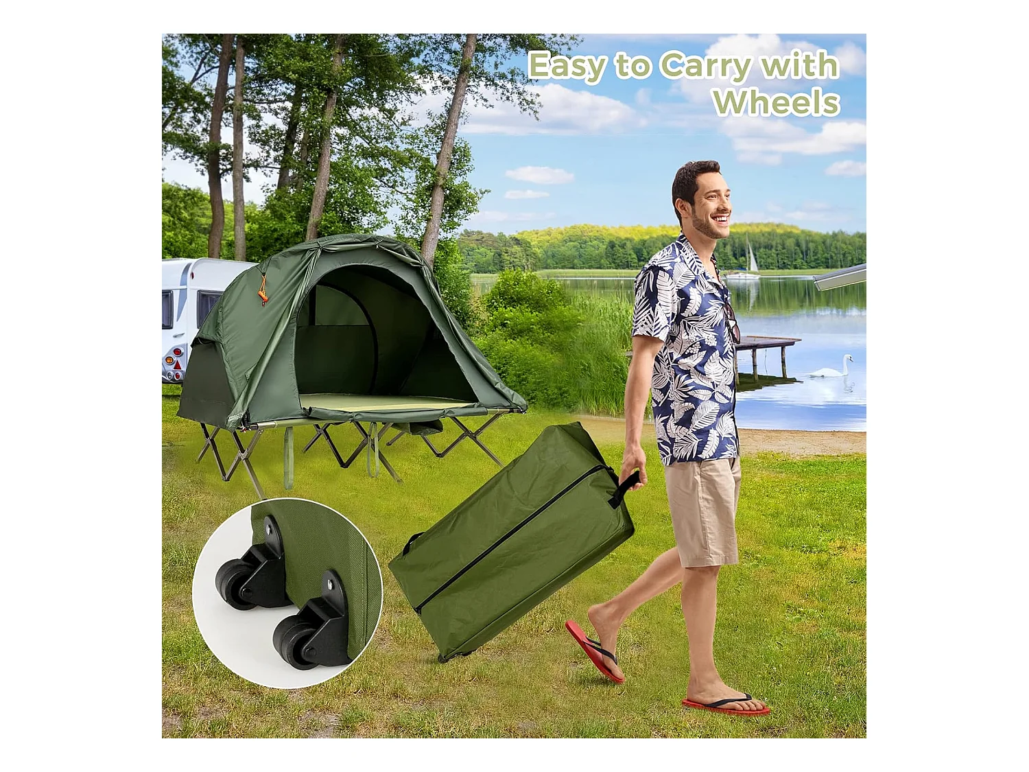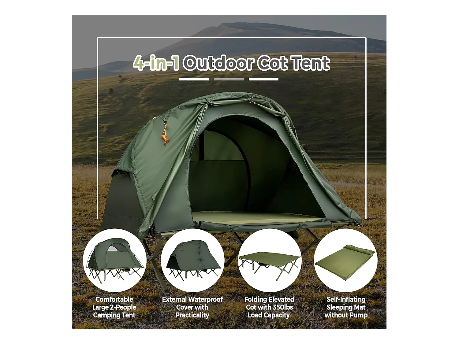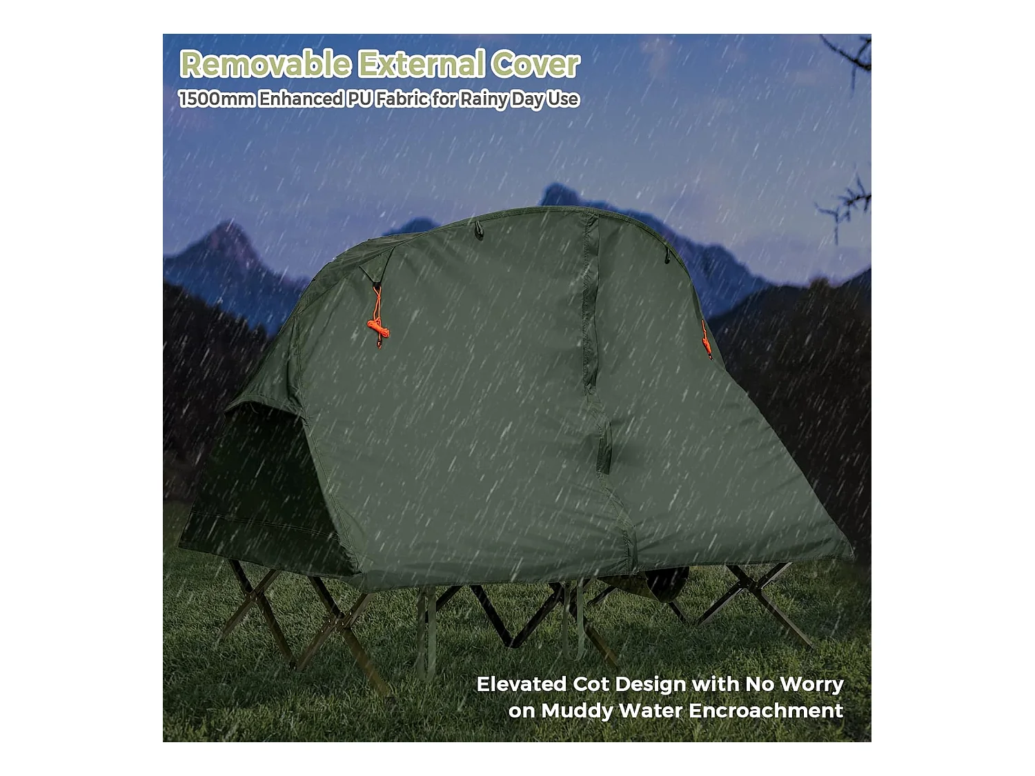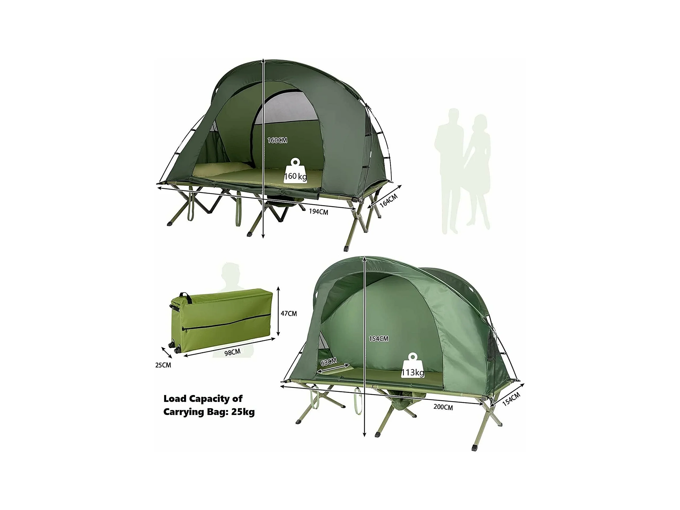 2-Persoons Kampeerbedje tent, 4-in-1 opvouwbaar tentbed met buitenhoes, draagbare verhoogde tent voor schoenen en lamphaak voor buitengebruik (Groen)ZB32374