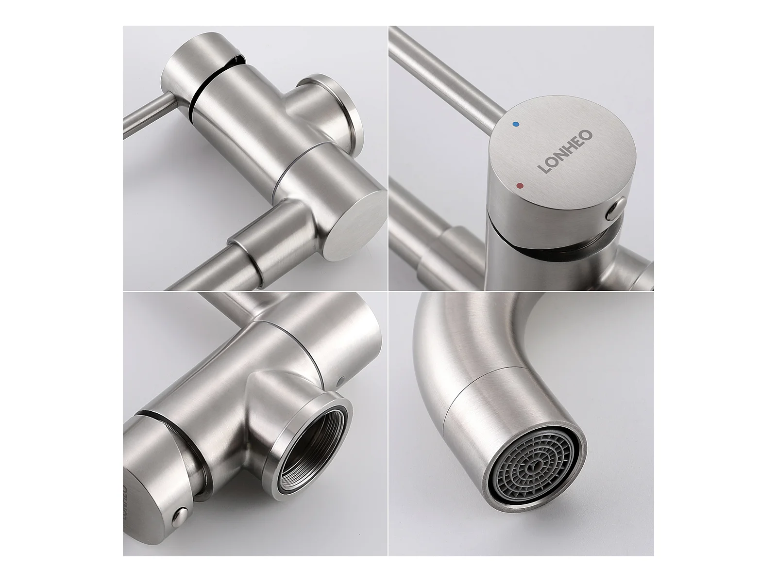 Opklapbare Keukenmengkraan, Opvouwbare Keukenkraan Onder Raam, Keukenkraan met hoge 360° draaibare uitloop en demonteerbare beluchter, geborsteld
