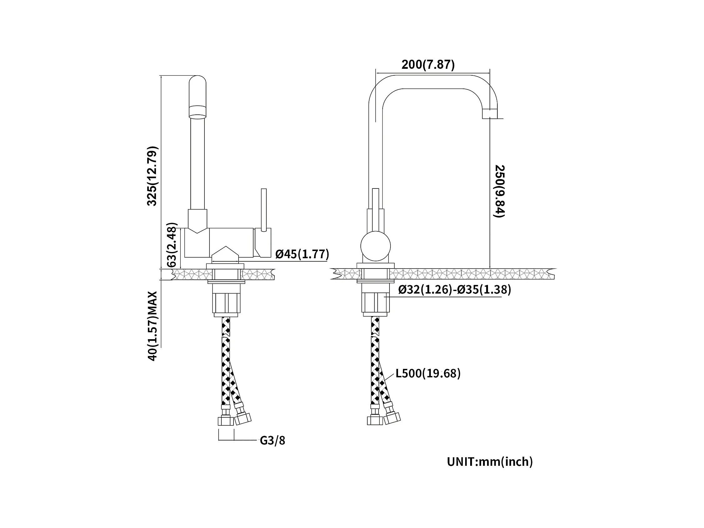 Keukenkraan met Koud Water Wastafelmengkraan met Flexibele Aansluiting, 360° Draaibaar, Keukenmengkraan met Uitloop Hoogte 350 mm, Geborsteld