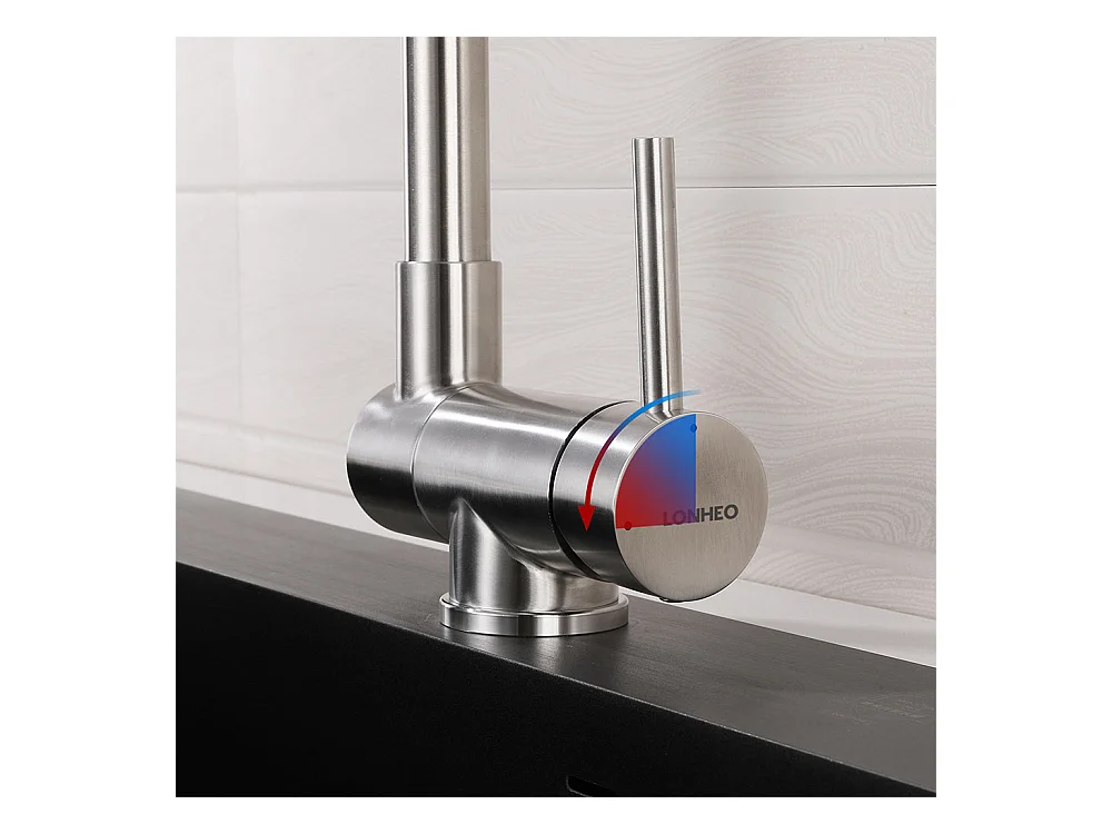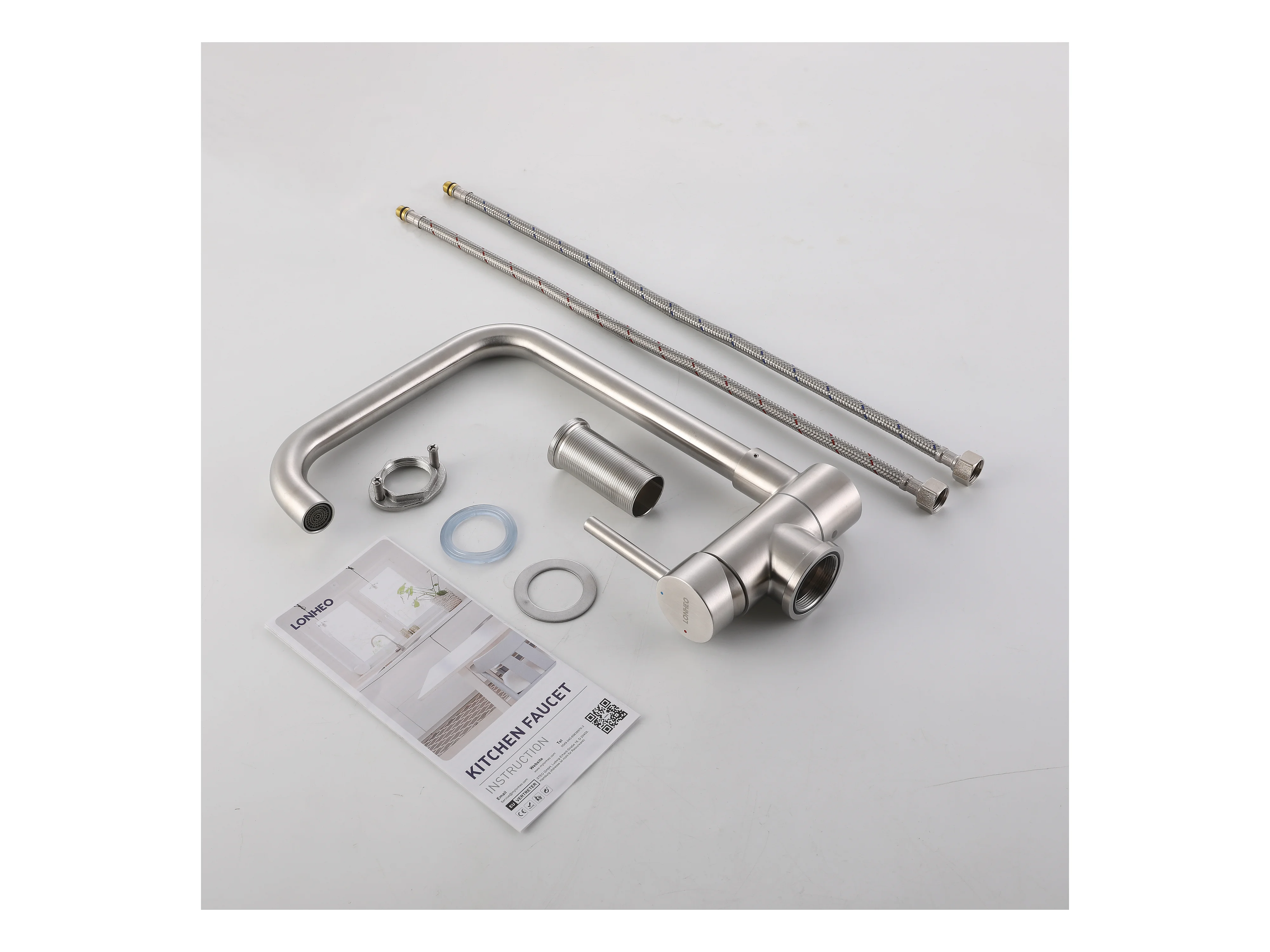 Koudwater keukenkraan, 360° draaibaar, enkele hendel koud water gootsteen kraan, roestvrij staal- geborsteld