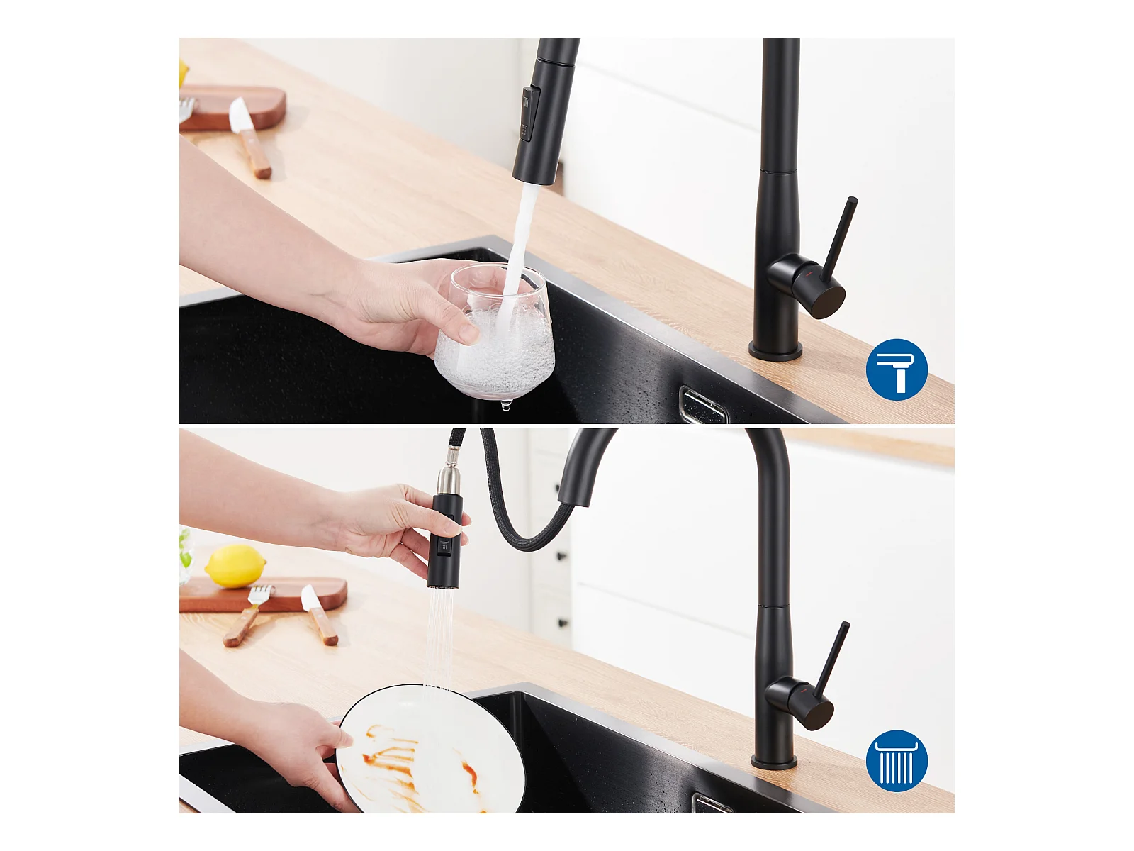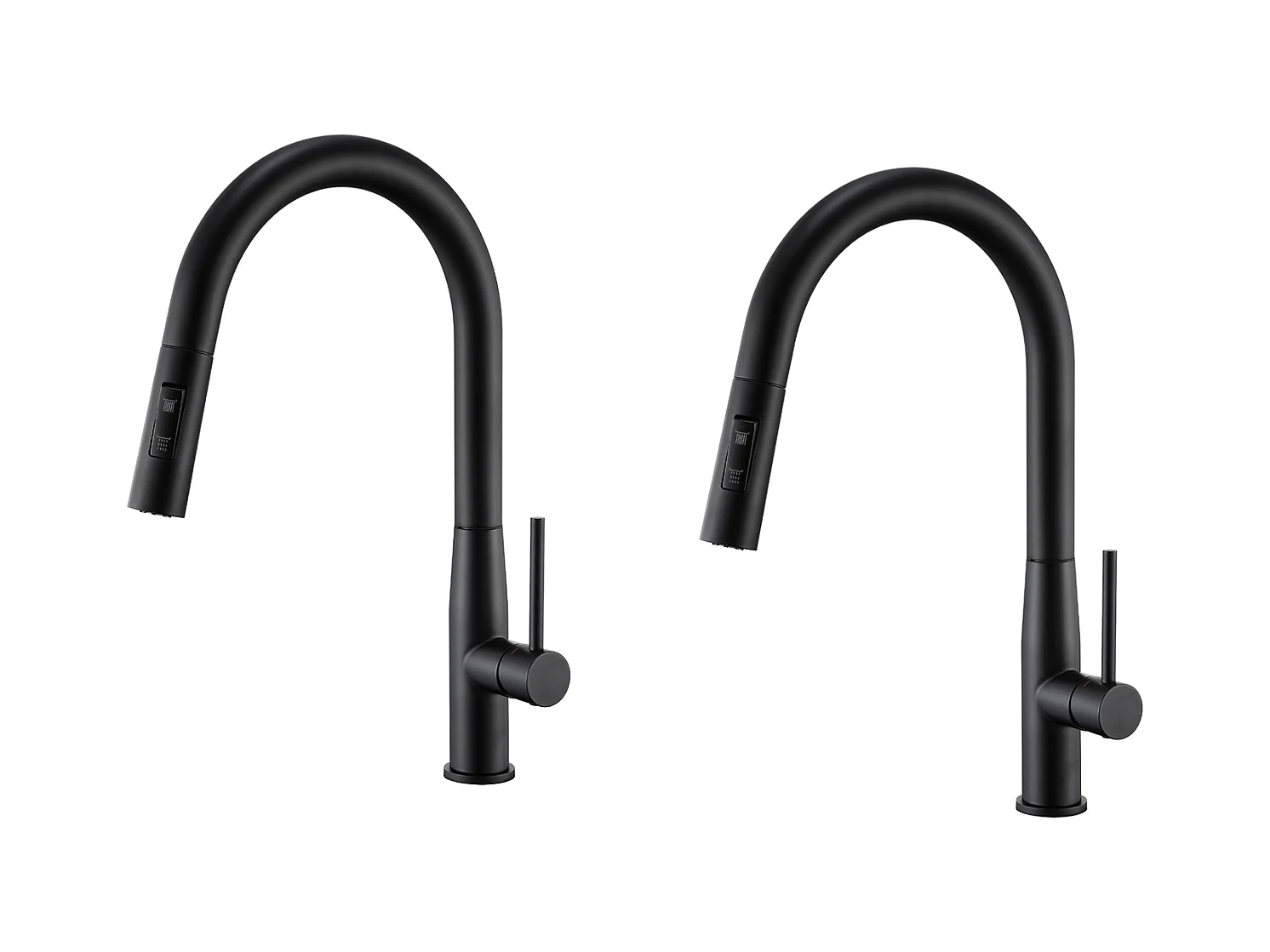 2 STUKS AURALUMMAX Keukenmengkraan, RVS Gootsteenkraan met DoucUittrekbare afzuigkap, 2 stralen koud/warm water 360 graden draaibaar, U-vormige uitloop, zwart