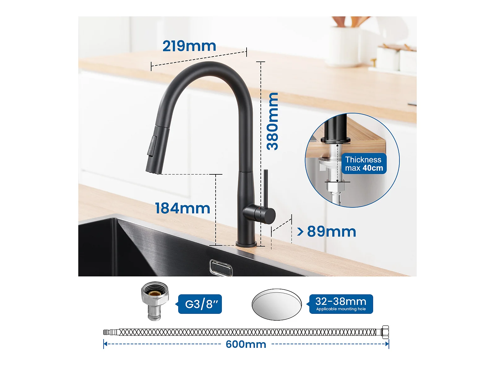 Cecipa max Keukenkraan RVS Keukenmengkraan Gootsteenmengkraan Keuken + Keukenzeepdispenser Zwart