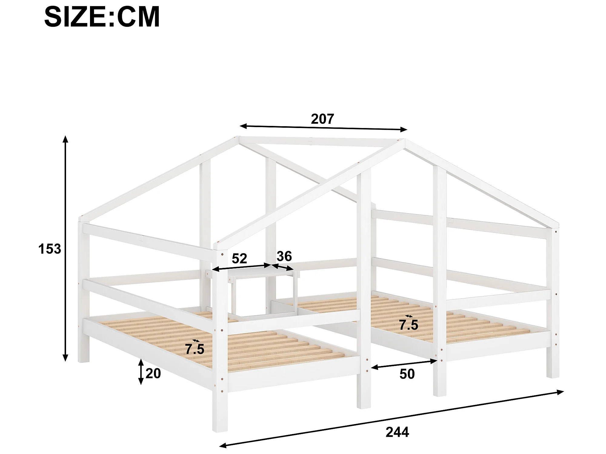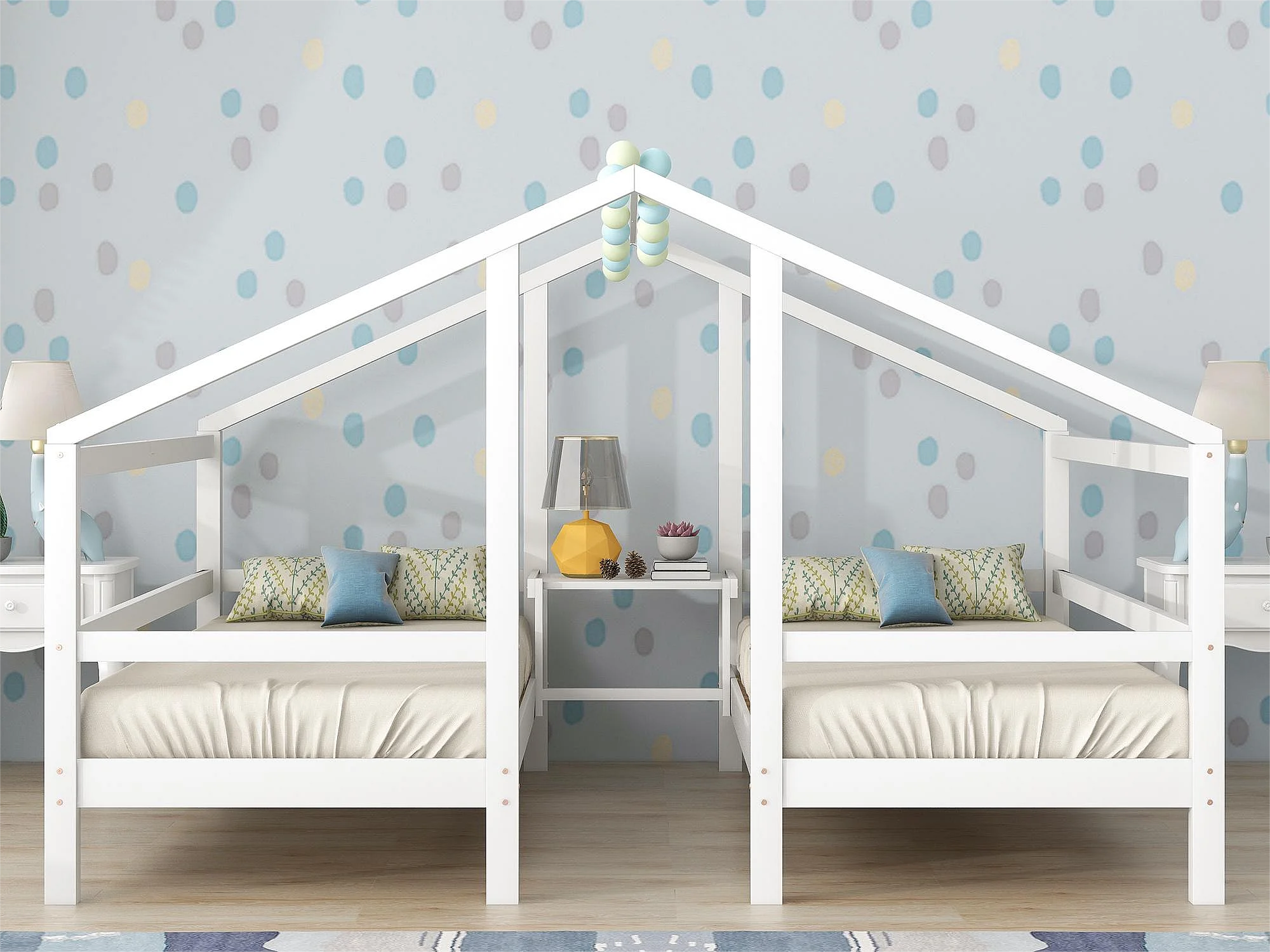 2-zits kajuitbed met nachtkastje - 2 x 90 x 200 cm - massief hout - lattenbodem - wit