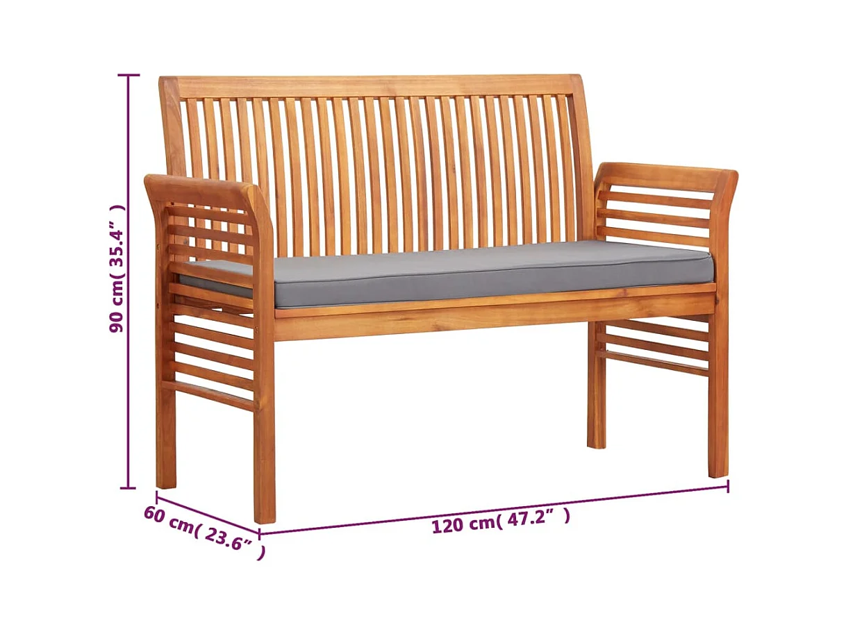 Bank met donkergrijze kussens van massief acaciahout