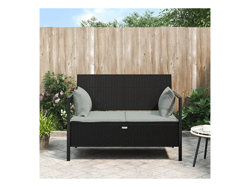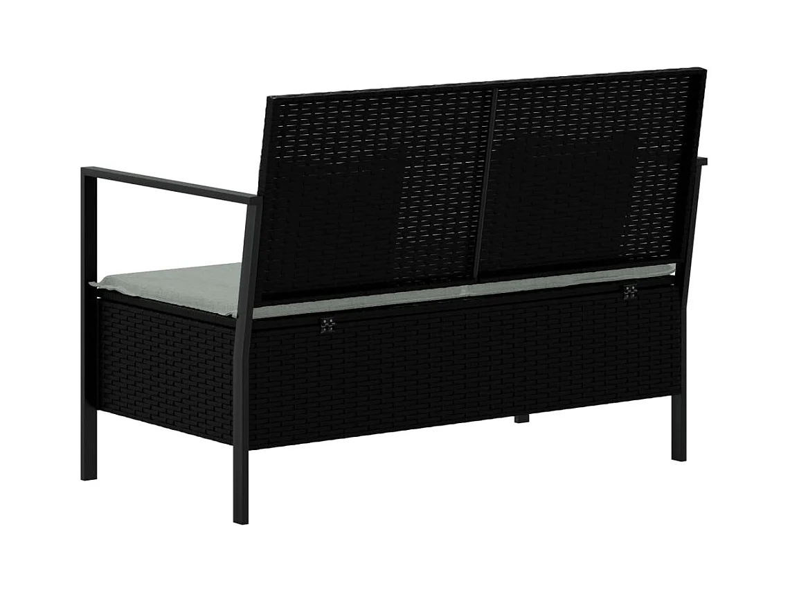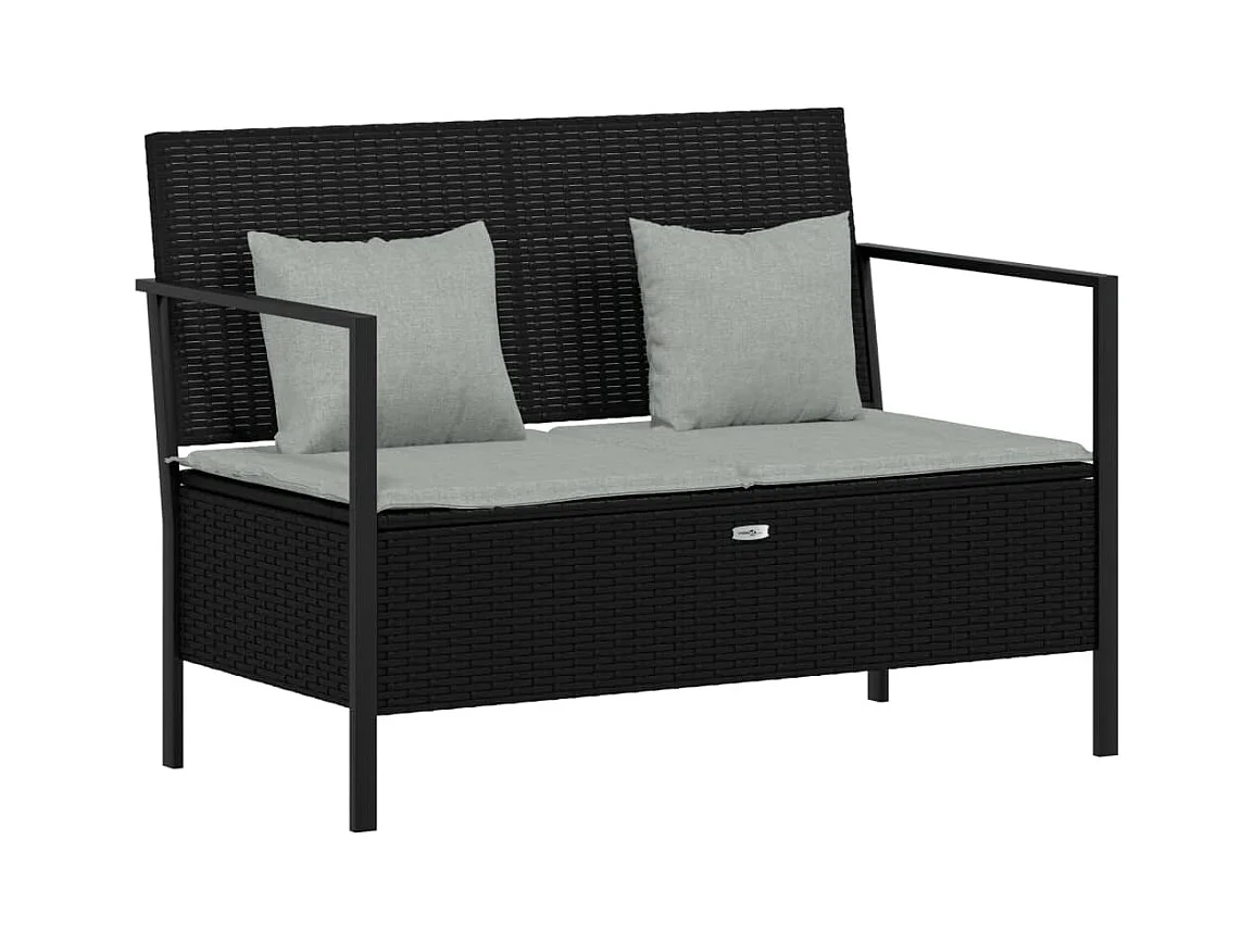 Liggende tuinbank met zwarte kunsthars rieten kussens