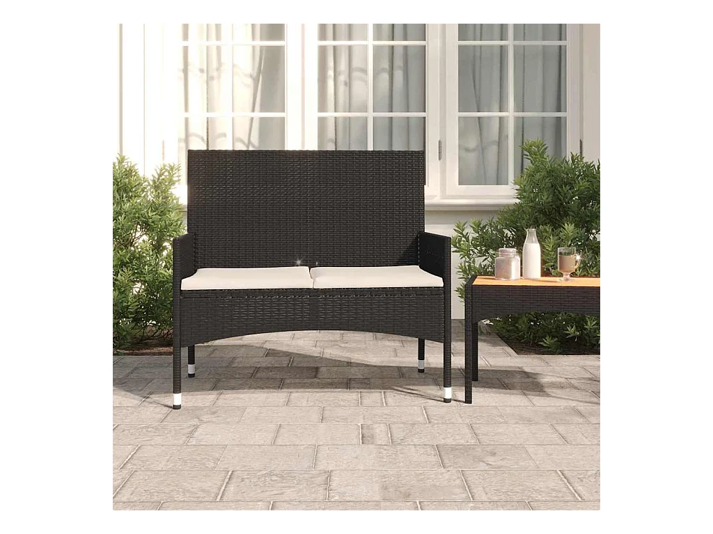 Tuinbank met zwart kussen van gevlochten hars en acacia