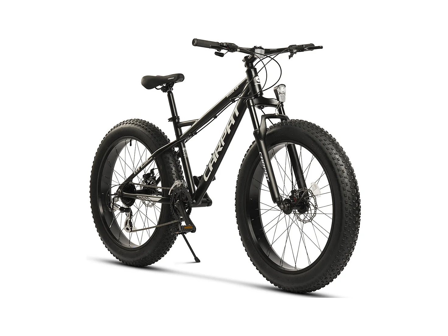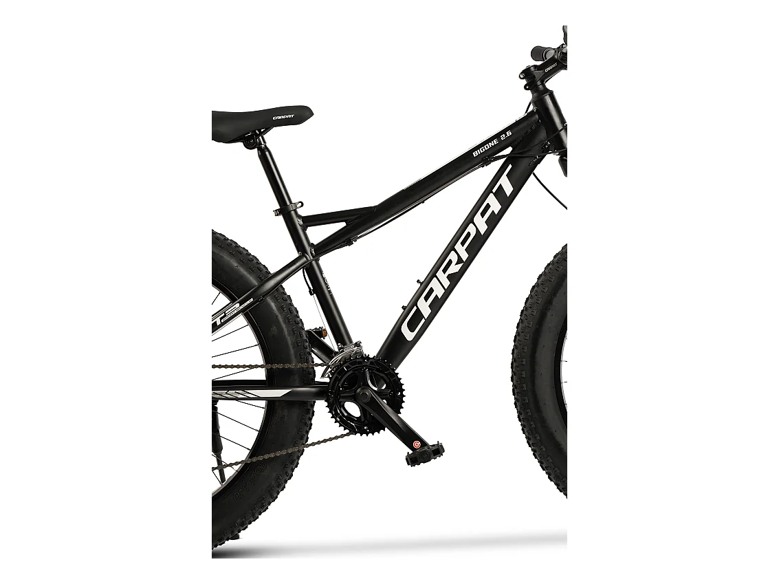 26" Fat Tire Mountainbike, 2x8 versnellingen, 80 mm verende voorvork, 160 mm schijfremmen, aluminium, zwart-wit (156 x 77 x 24 cm)
