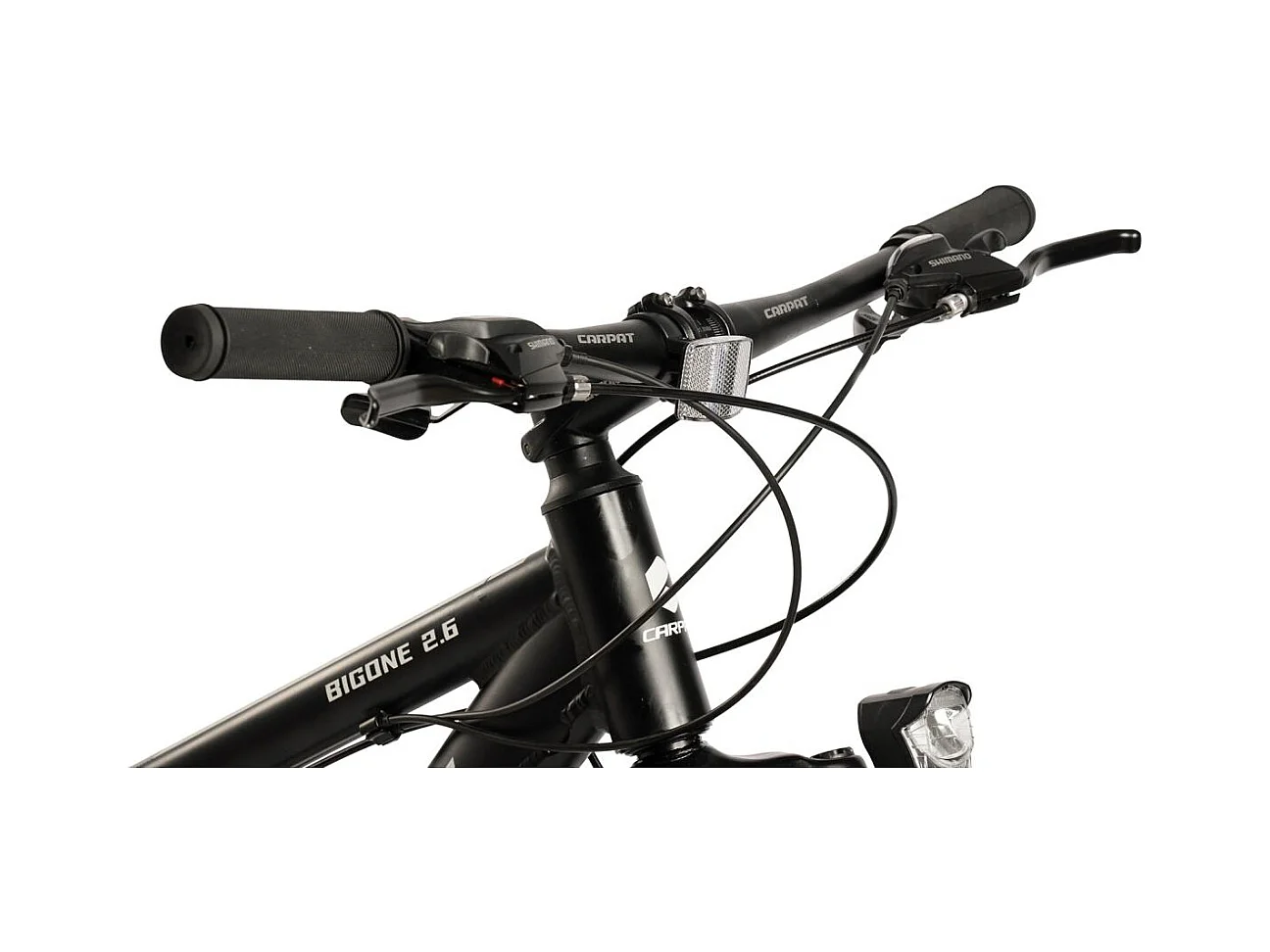 26 inch mountainbike met brede banden, 2x8 versnellingen, verende voorvork, schijfremmen, hardtail, aluminium, zwart (156x77x24 cm)