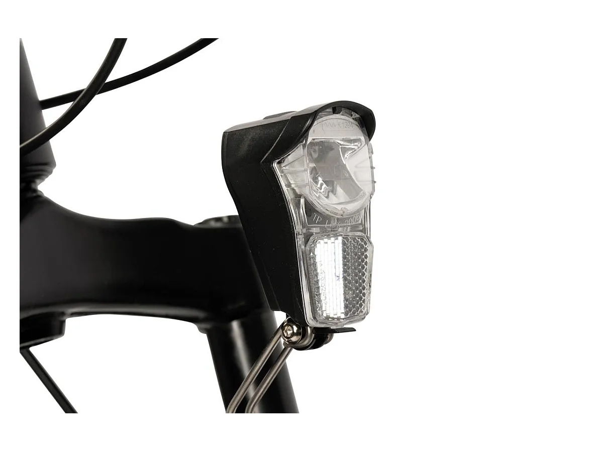 Stadsfiets met 28 inch aluminium frame, 2x7 versnellingen, dubbele schijfremmen, geïntegreerde kabelgeleiding, afneembaar voorwiel (138x73x20 cm)