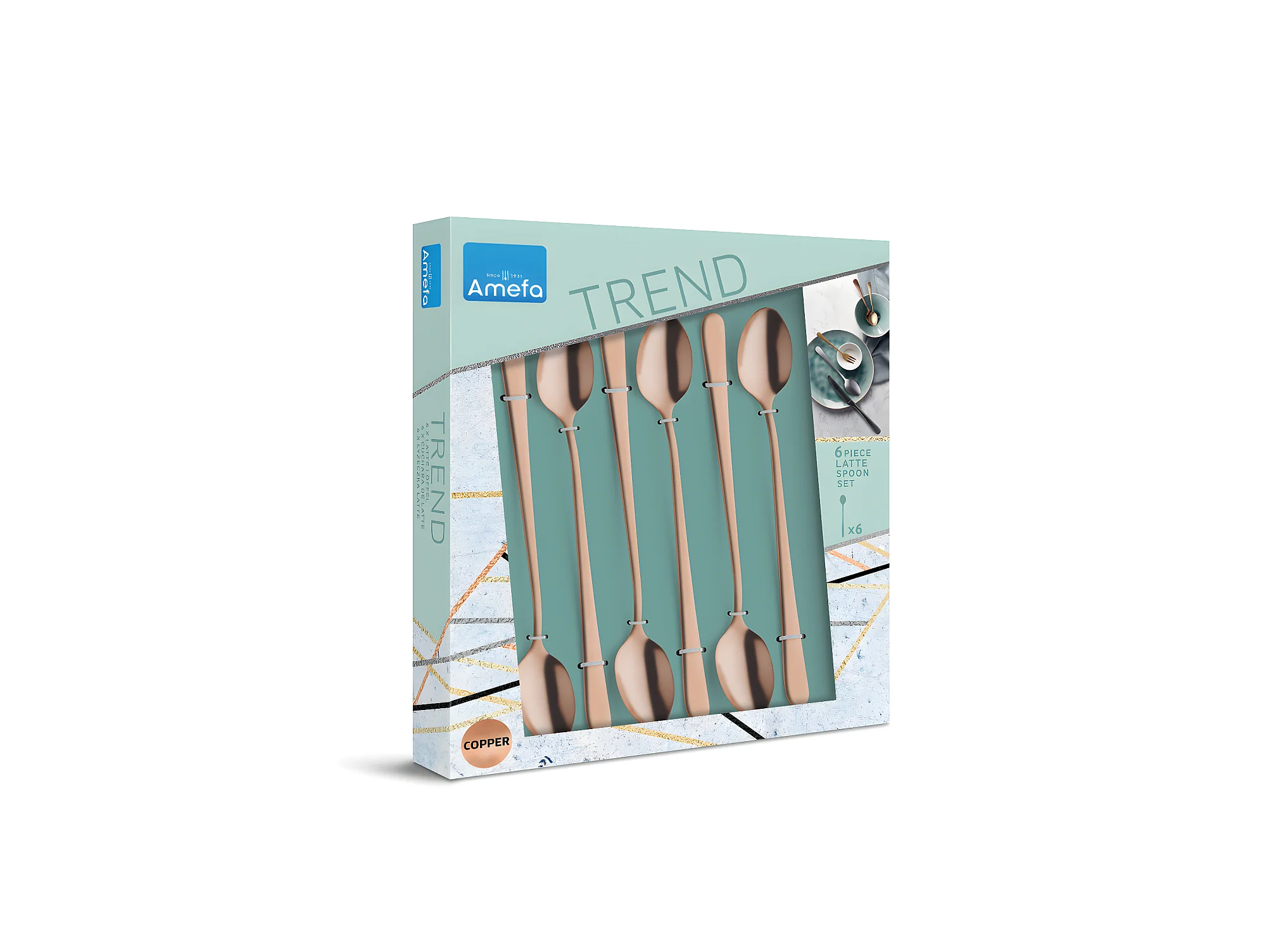 Set van 6 latte macchiato lepels van roestvrij staal met mat koperen afwerking