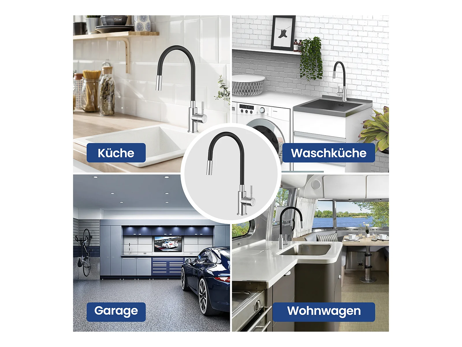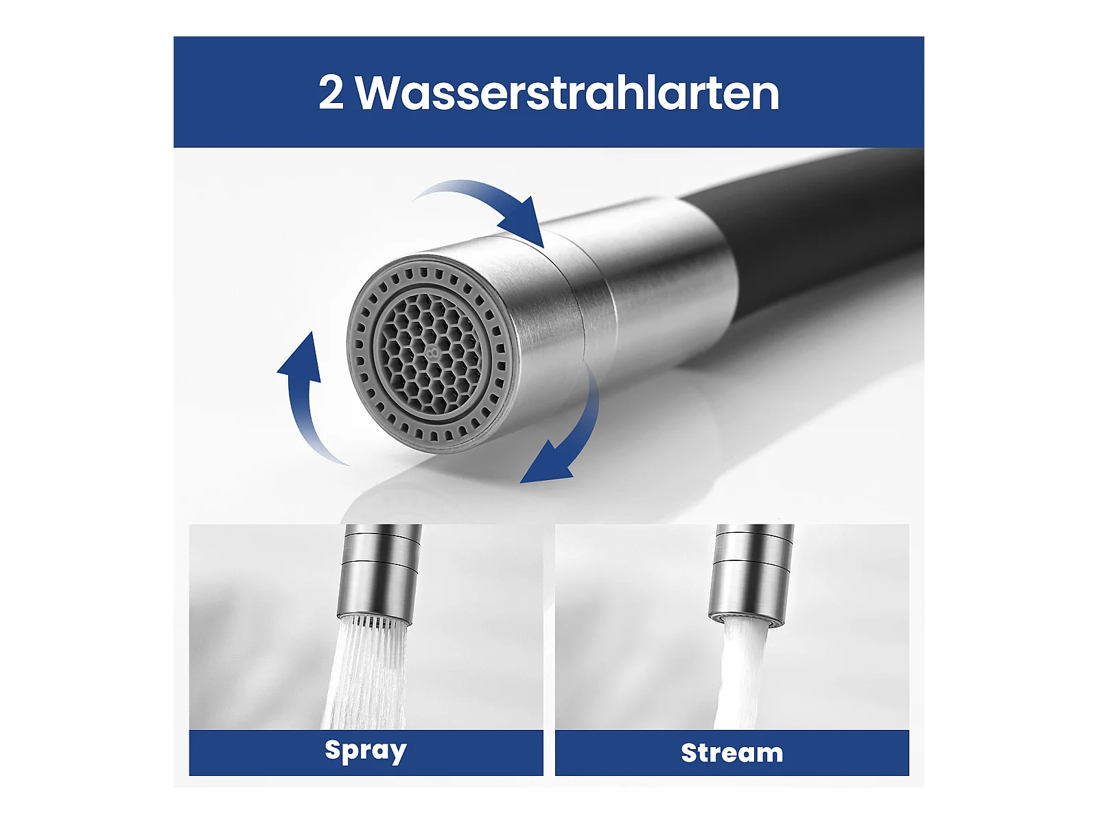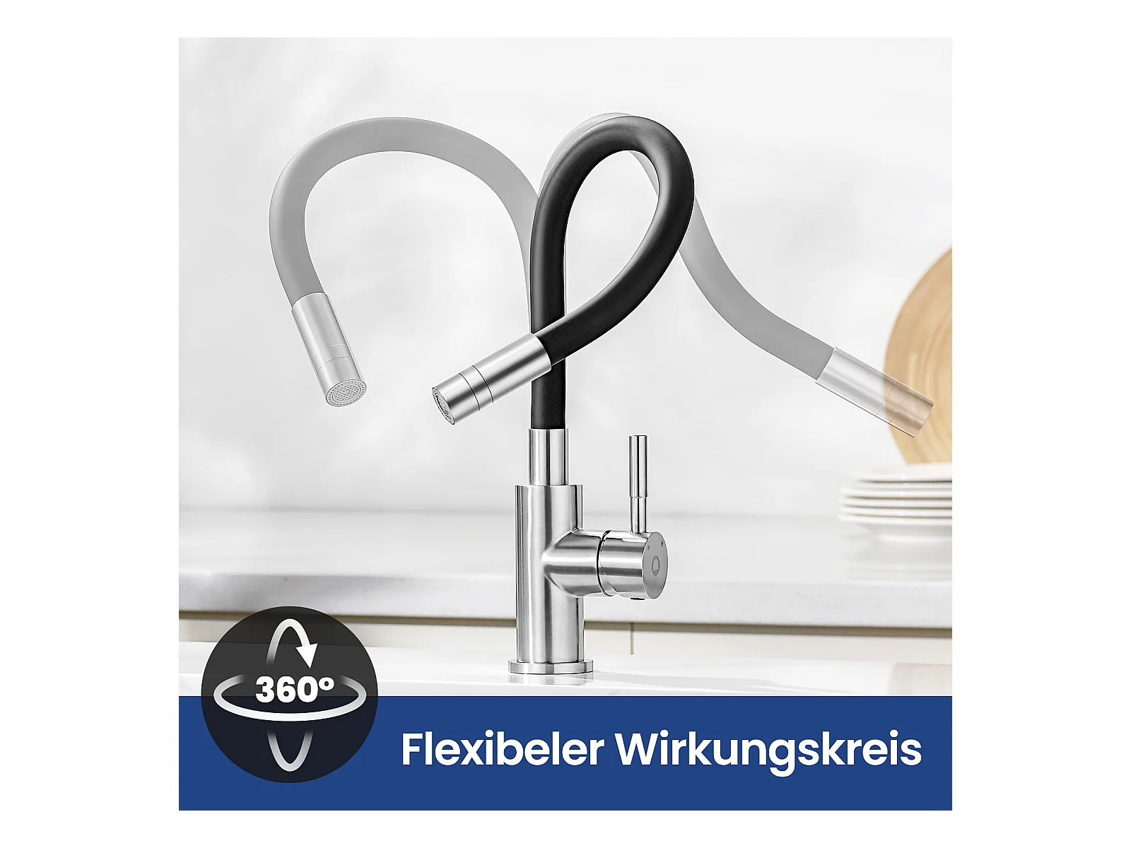 2PCS flexibele keukenkraan met 2 spuitsoorten, neerklapbare keukenmengkraan, flexibele wastafelmengkraan met warm en koud water - zwart + geborsteld