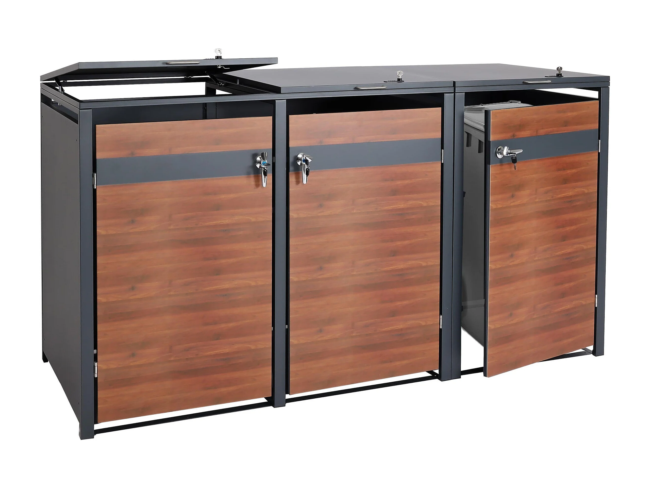 3-delige afvalbakbekleding MCW-J82, donkerbruin kersenhout look