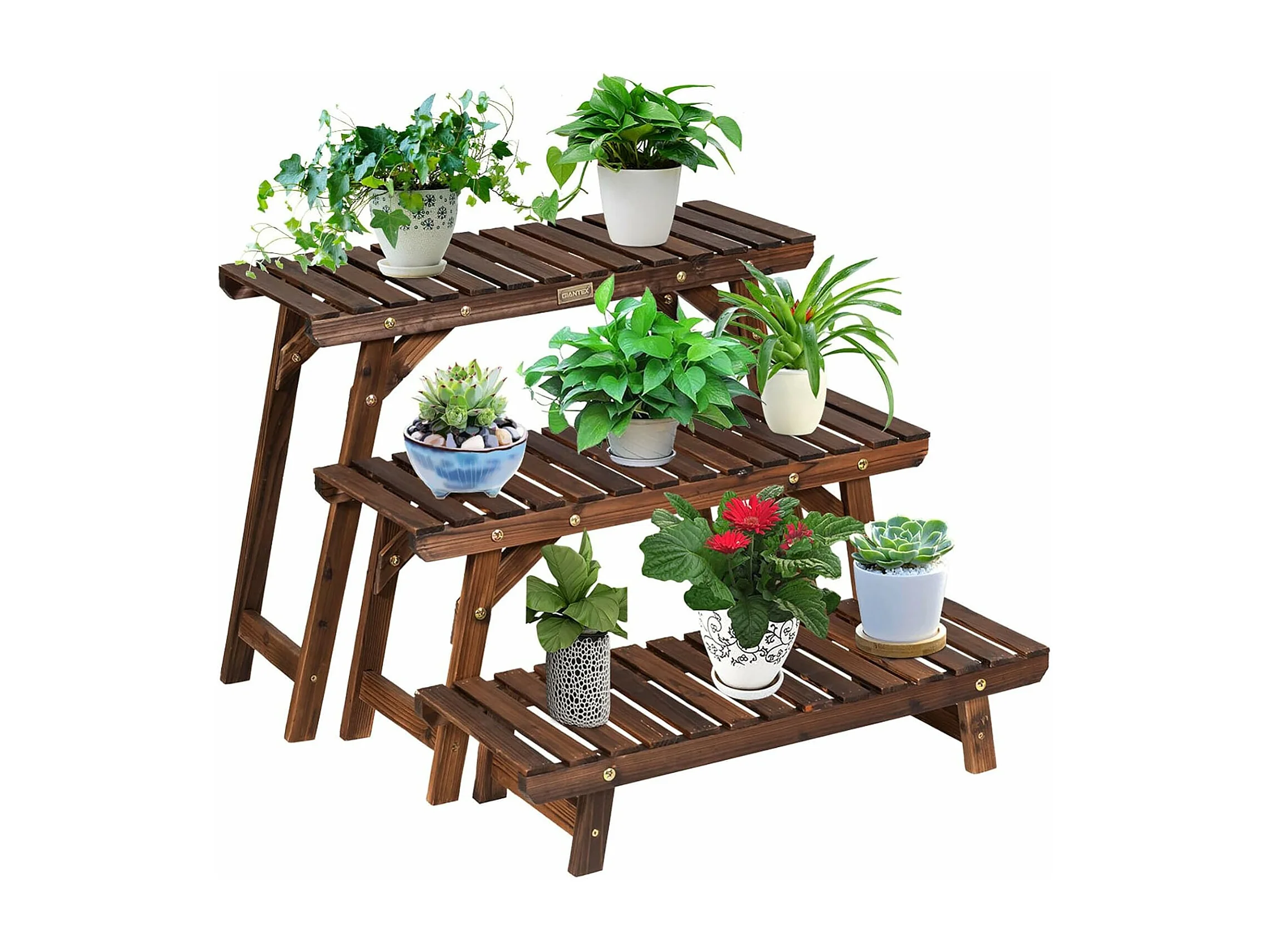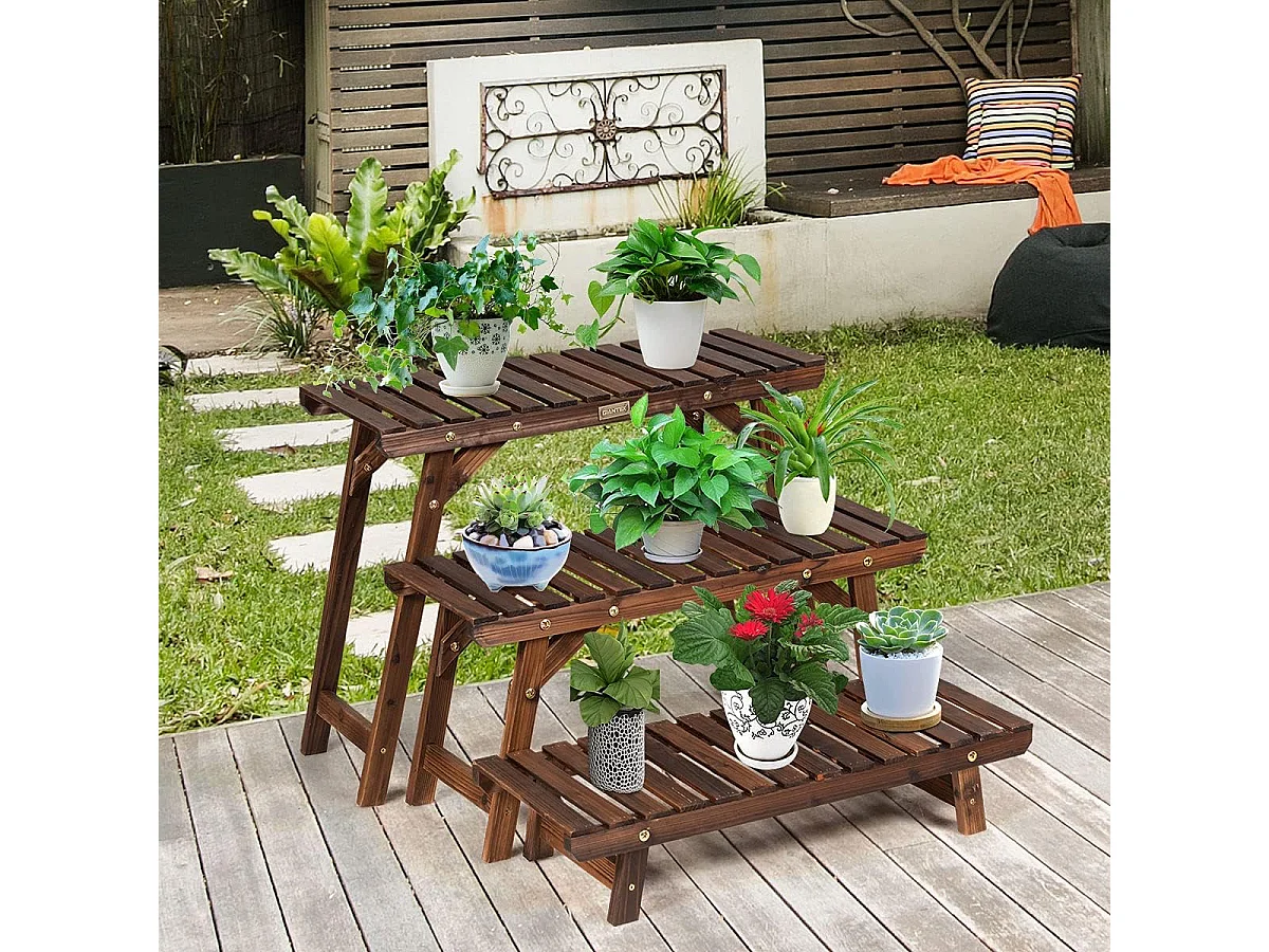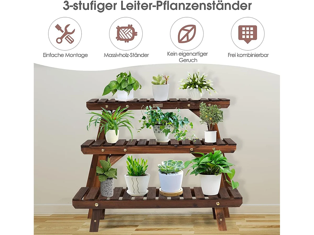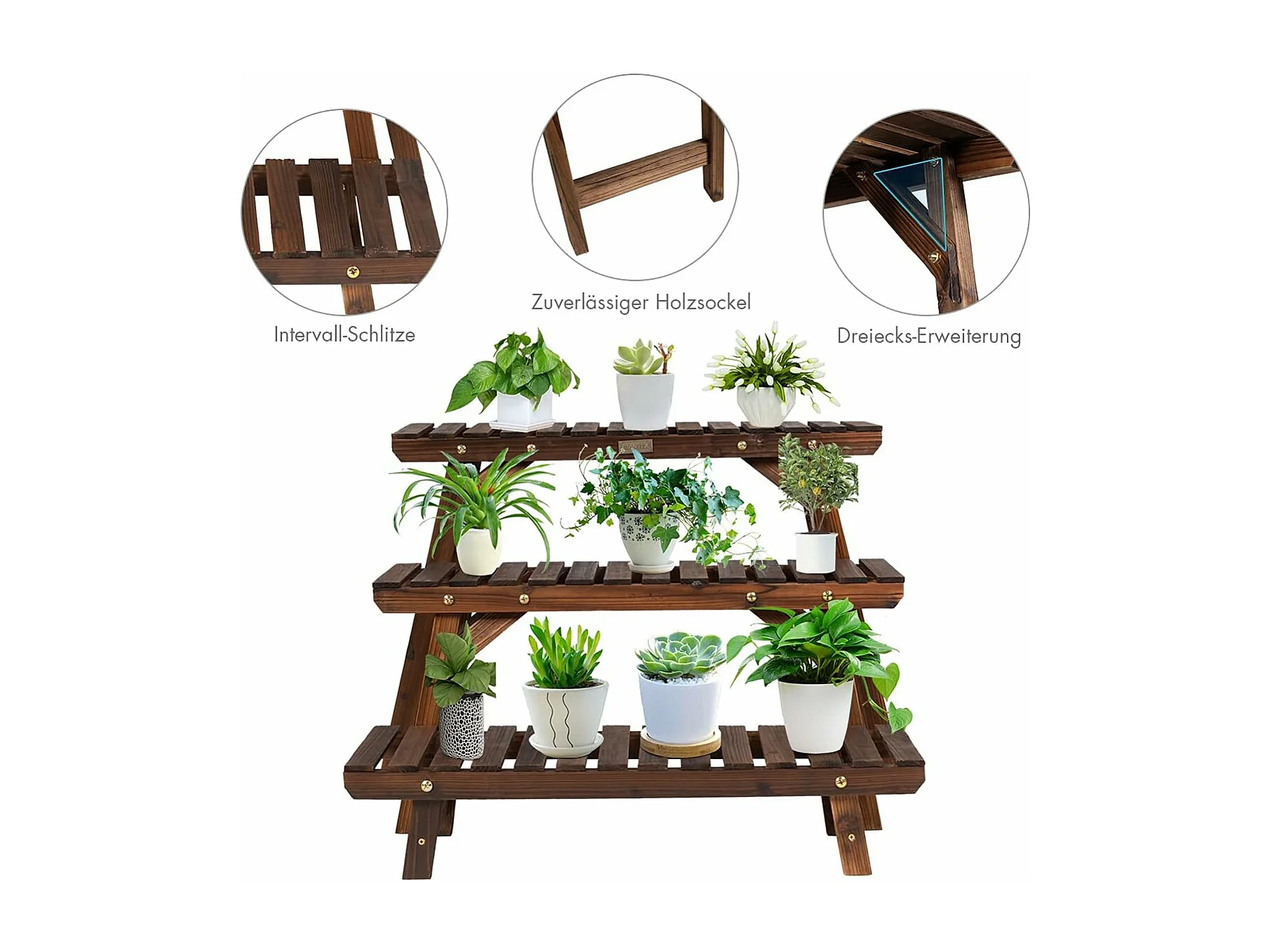 3-delig bloemenstandaard houten plantenrek bloemenrek bloementrap tuin plantentrap vrijstaand, houten rek meerdere verdiepingen