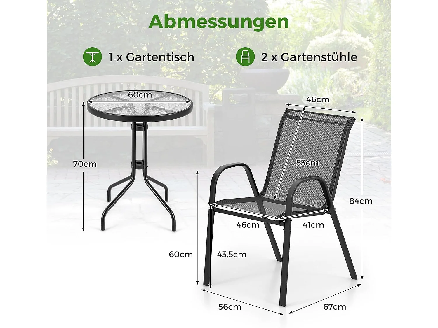 3-delige balkonmeubelset, bistrotafel met 2 stapelbare stoelen, balkonset, bistroset, tuinset, tuingereedschap, tuinmeubelen, zitgroep voor tuin, balkon ZB33833