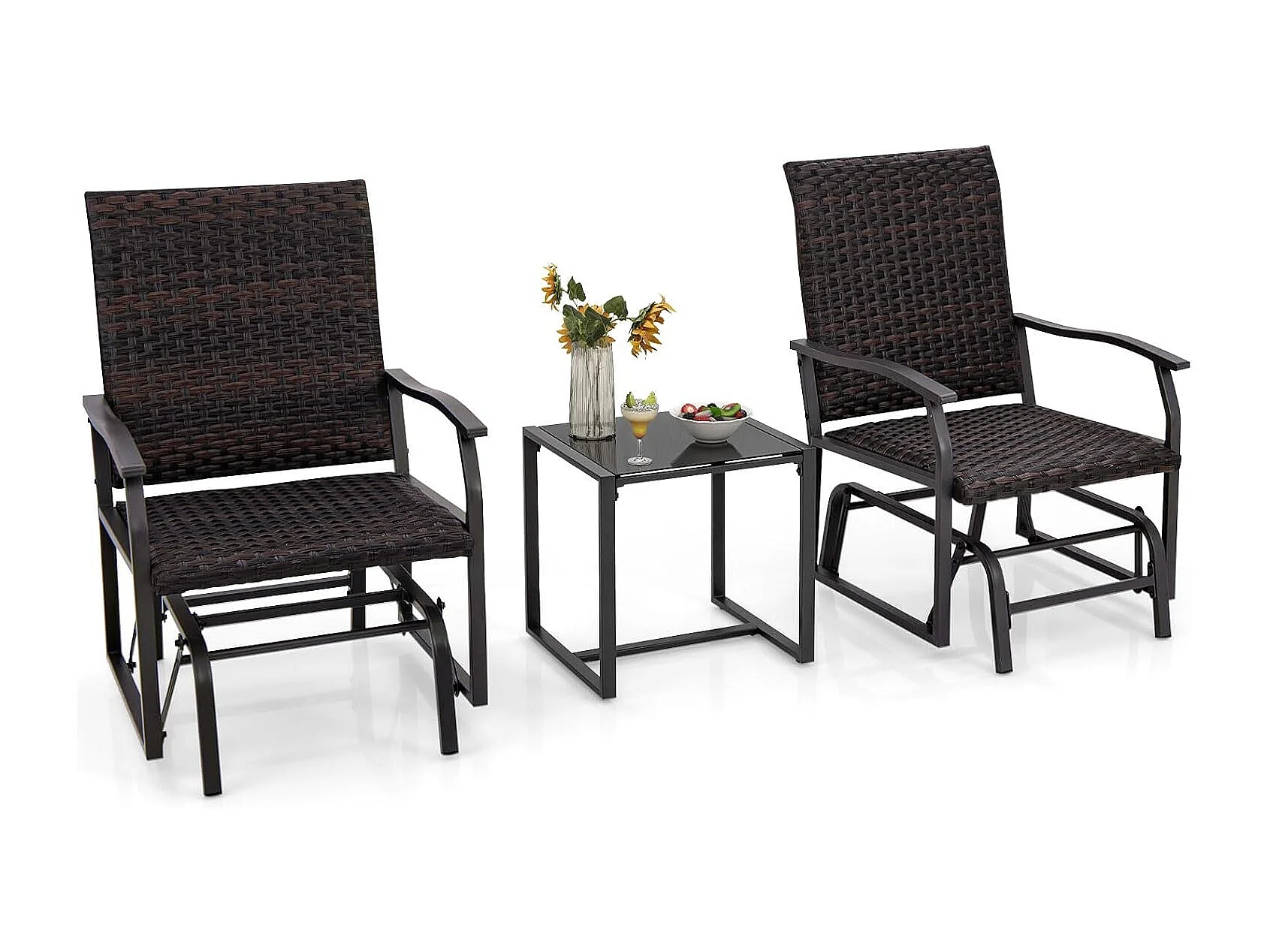 3-delige balkonmeubelset, rotan balkonset, tuinmeubelen met gevoerde zitting, rotan meubels voor klein balkon, terrasmeubels, zitgroep voor tuin, veranda ZB33613