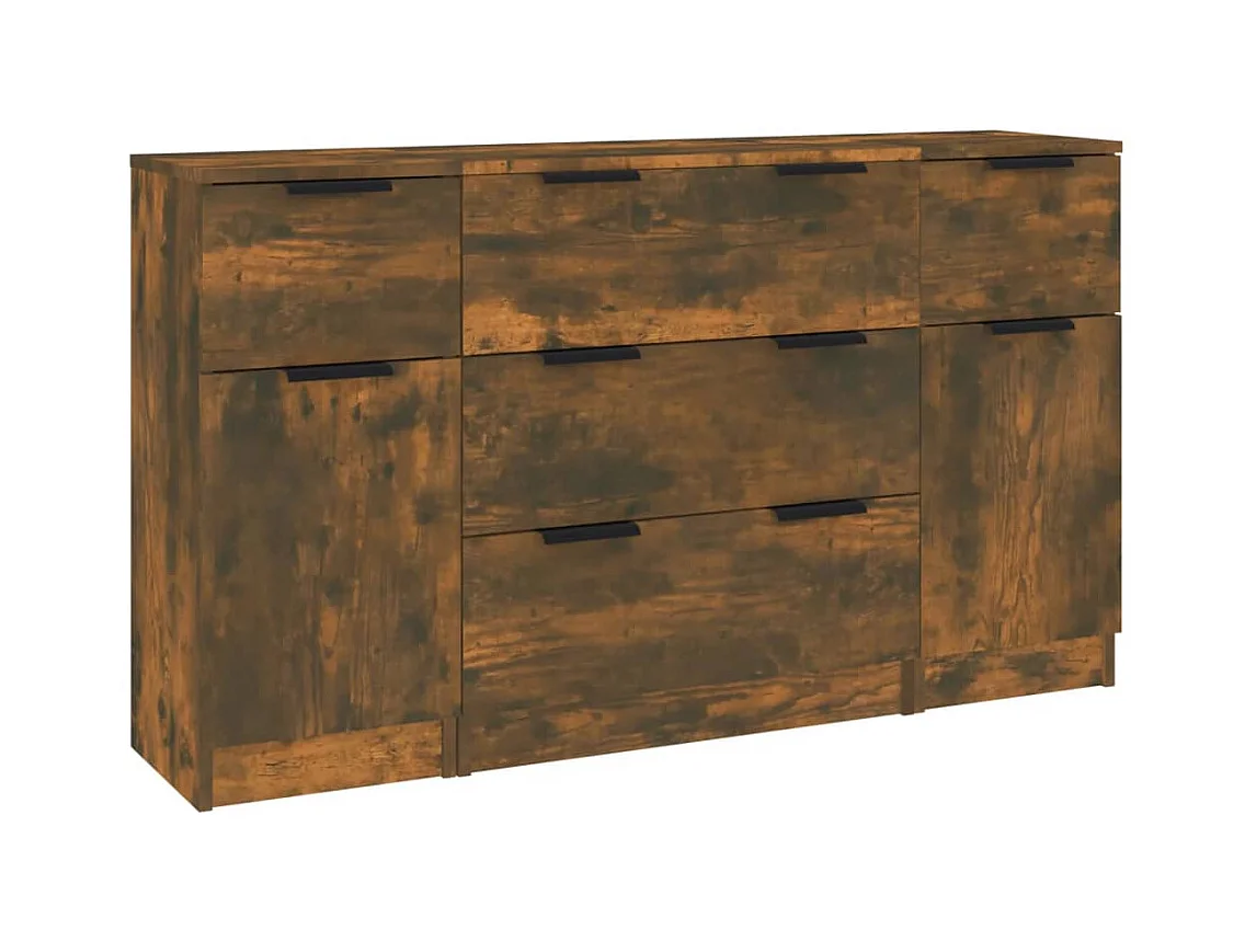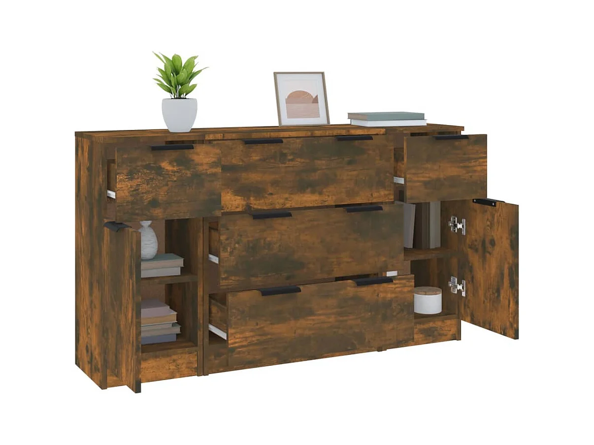 3-delige Dressoirset bewerkt hout gerookt eiken