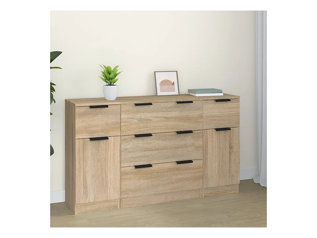 3-delige Dressoirset bewerkt hout sonoma eiken