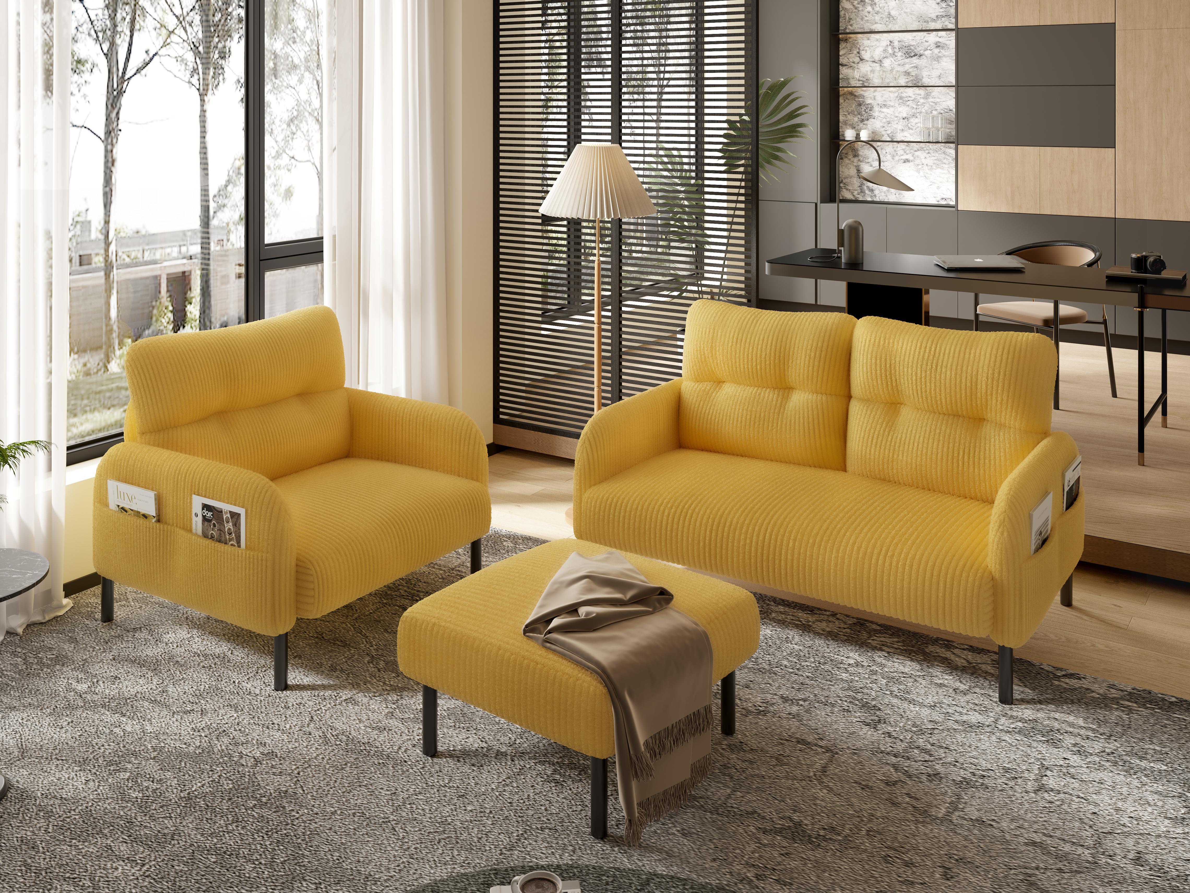 3-delige fluwelen set – 2-zits en 3-zits bank + voetenbank – kussens inbegrepen – zijzakken – ideaal voor woonkamer, kantoor en slaapkamer
