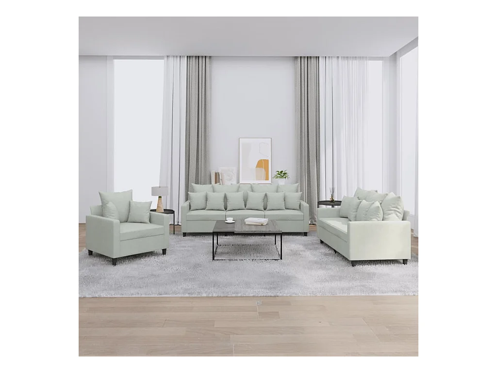 3-delige Loungeset met sierkussens stof lichtgrijs