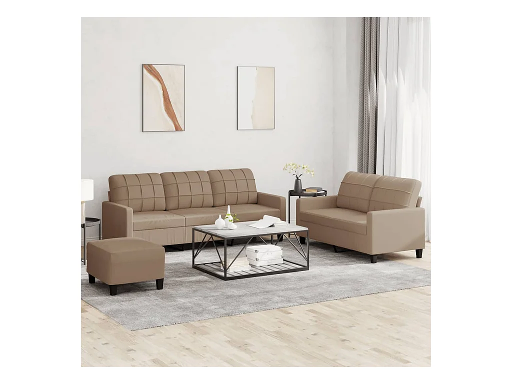 3-delige Loungeset met kussens kunstleer cappuccinokleurig