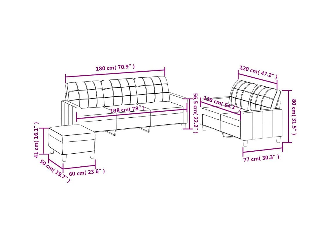 Set: driezits + tweezitsbank - Wit / Ivoor