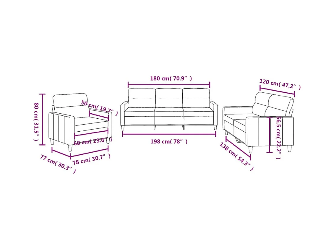 Set: driezits + tweezitsbank - Wit / Ivoor