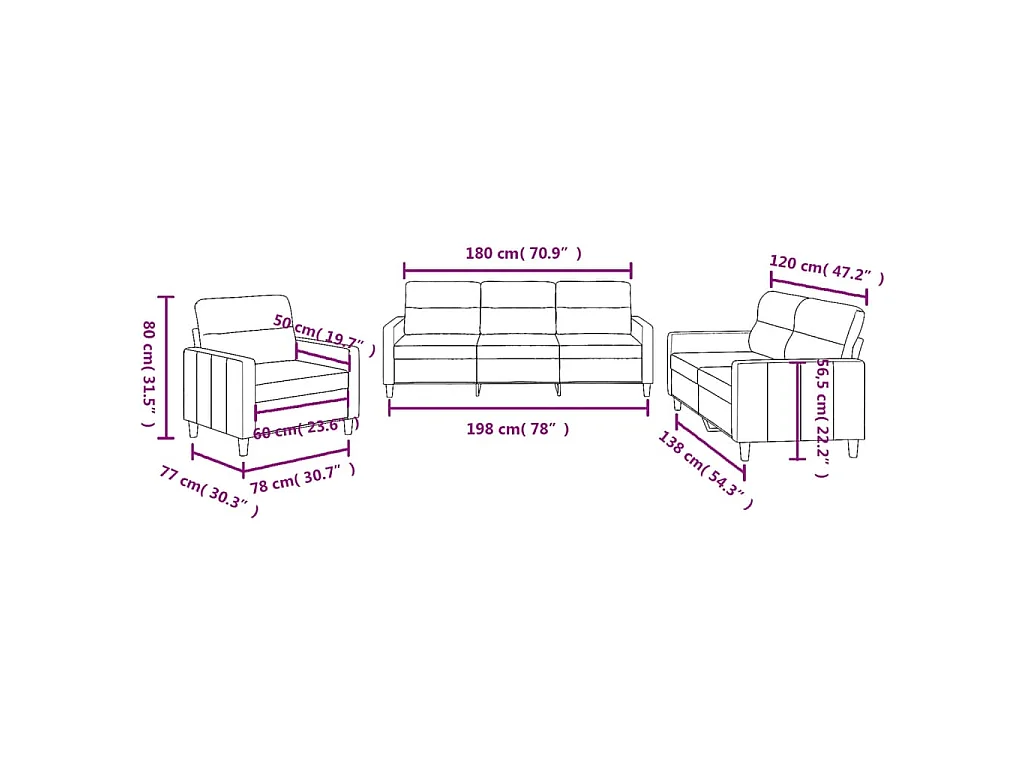 3-delige Loungeset met kussens stof lichtgeel