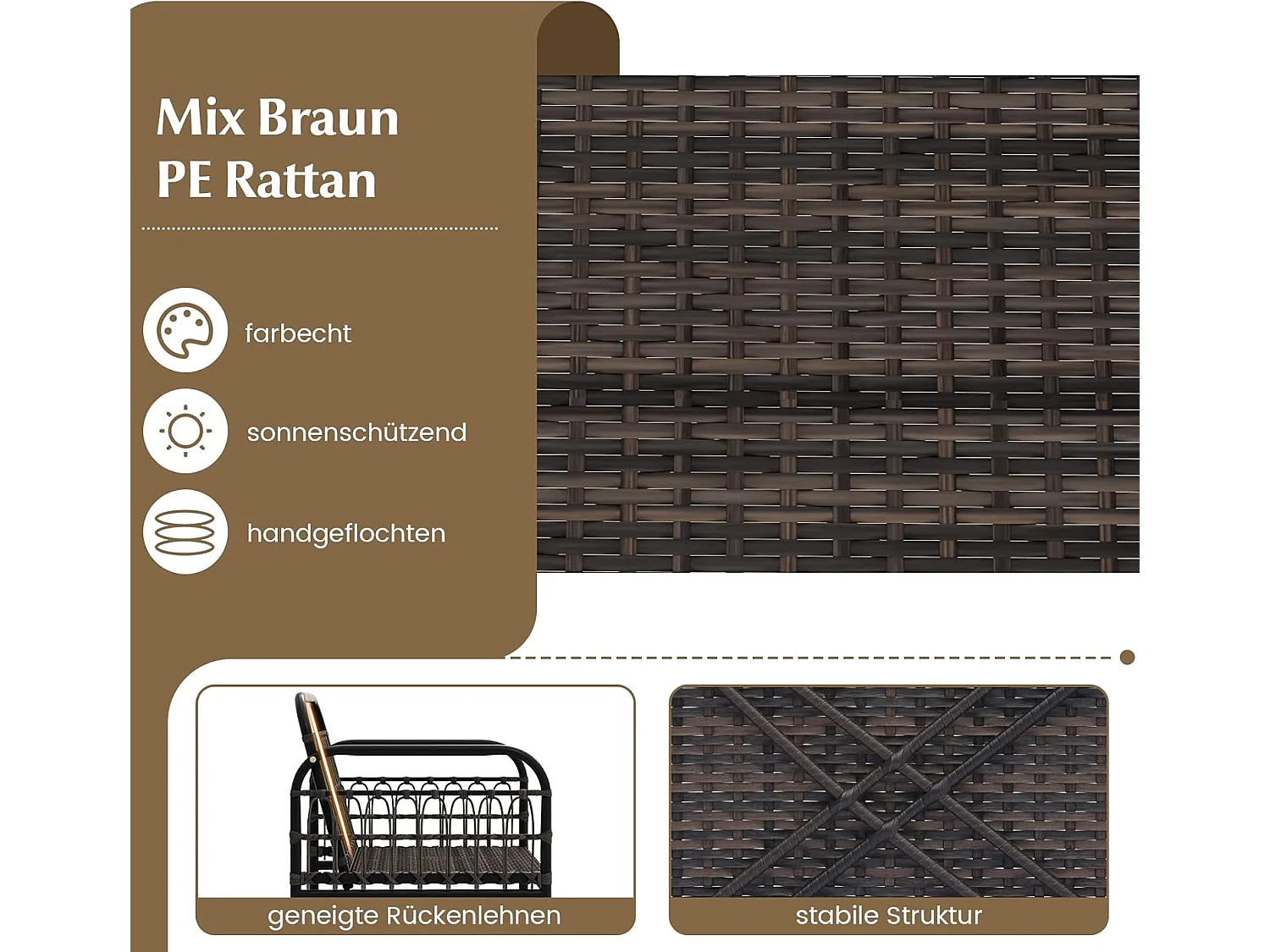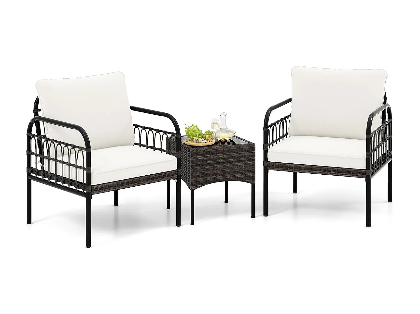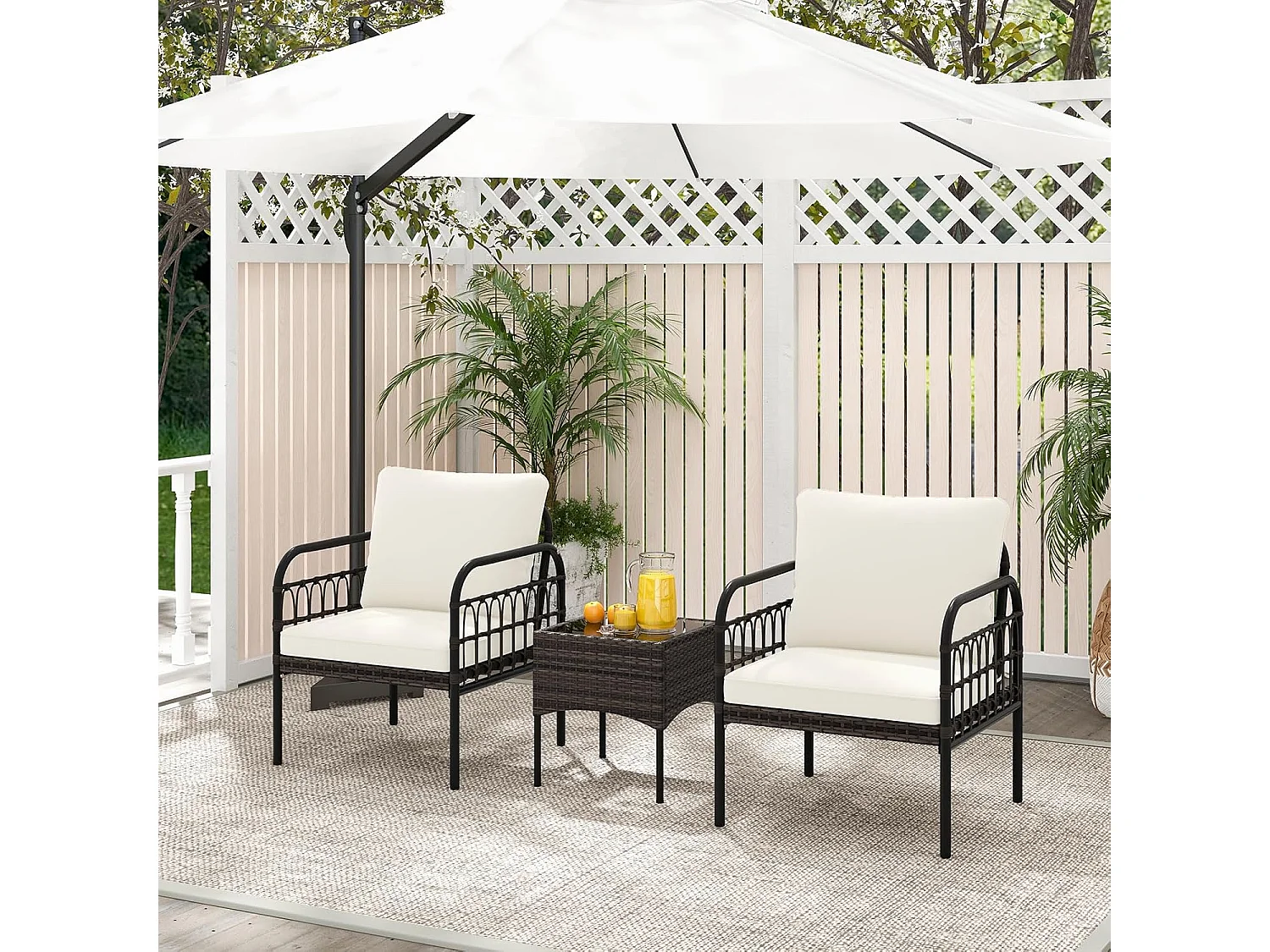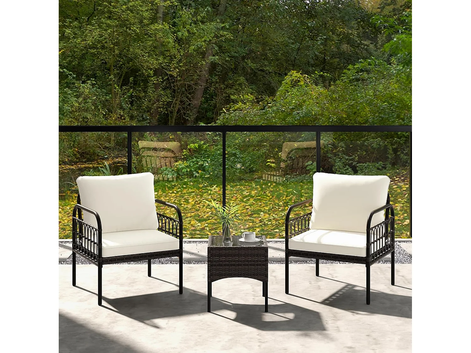 3-delige rotan stoelset, tuinstoel,terrasstoelen, metalen frame met glazen bijzettafel en kussens, gesprekset,tuinmeubelset voor tuin,achtertuin en zwembad TI93705