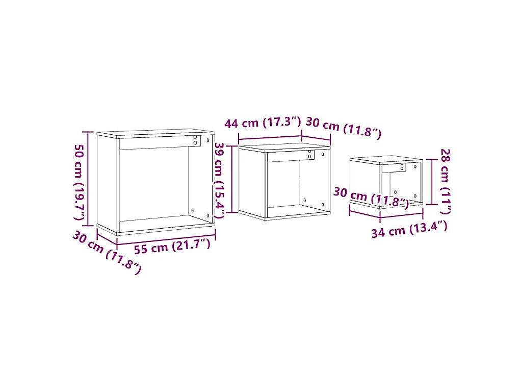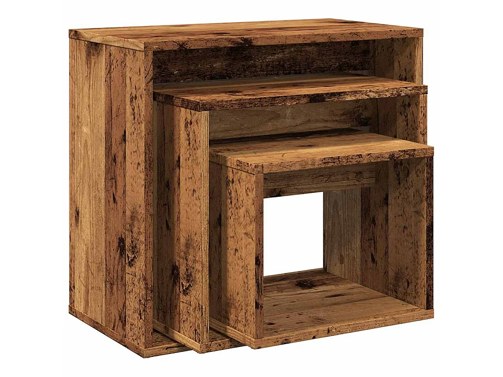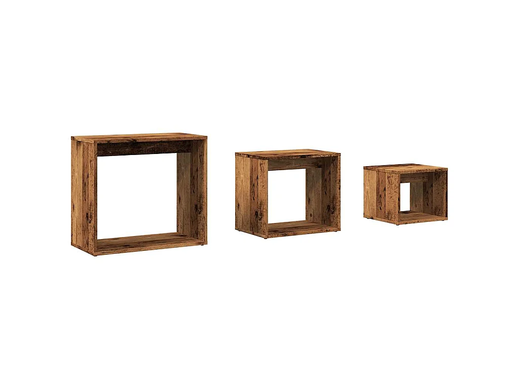 3-delige Tafeltjesset bewerkt hout oud houtkleurig