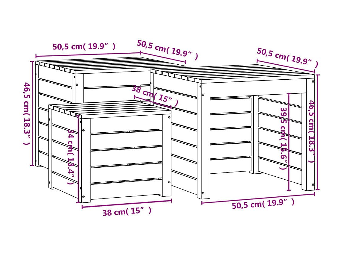 3-delige Tuinboxset massief grenenhout