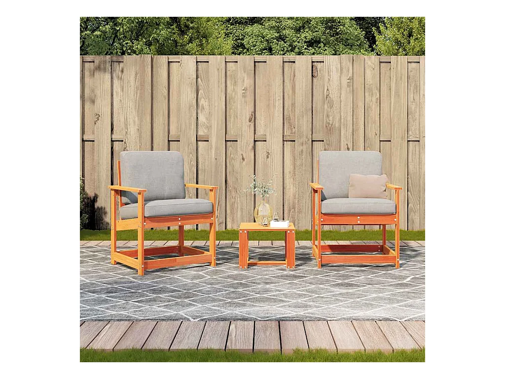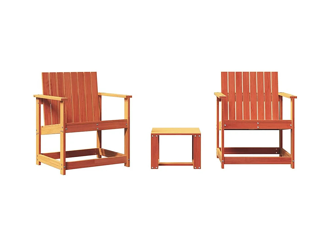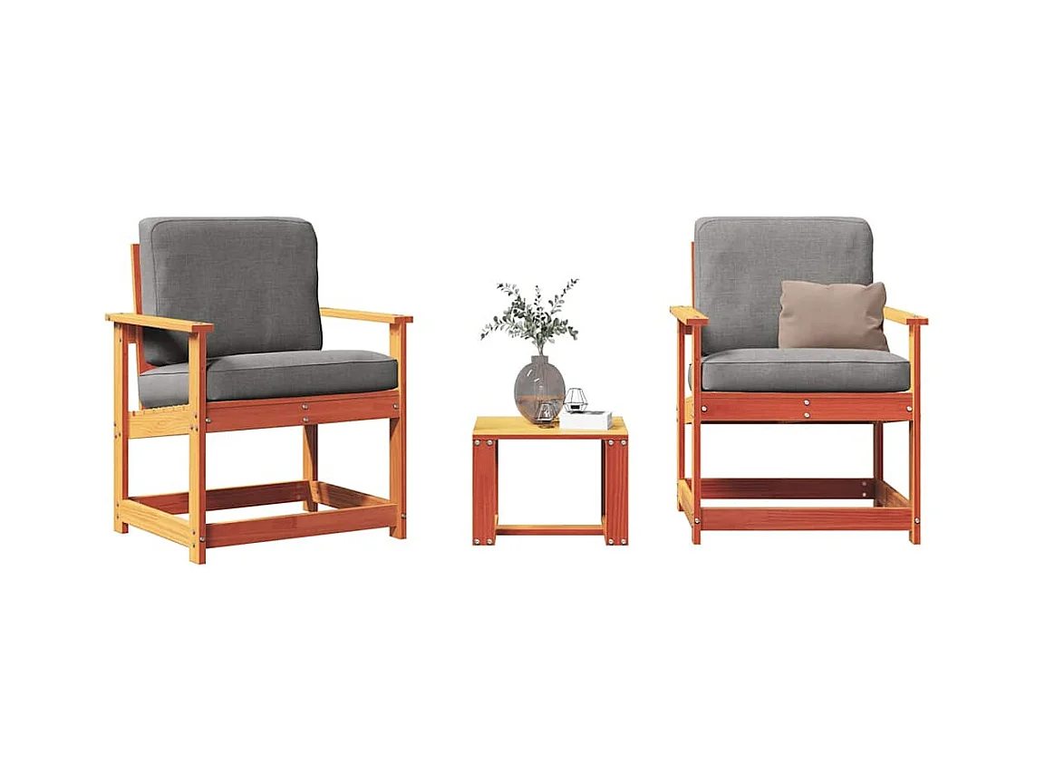 3-delige tuinmeubelset, bruine was, massief grenenhout