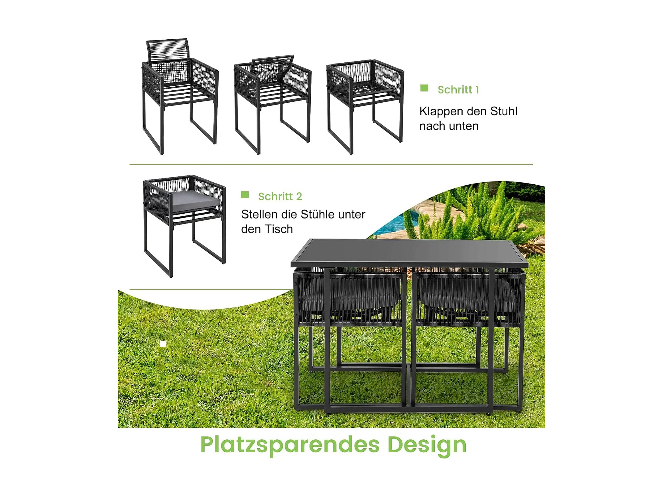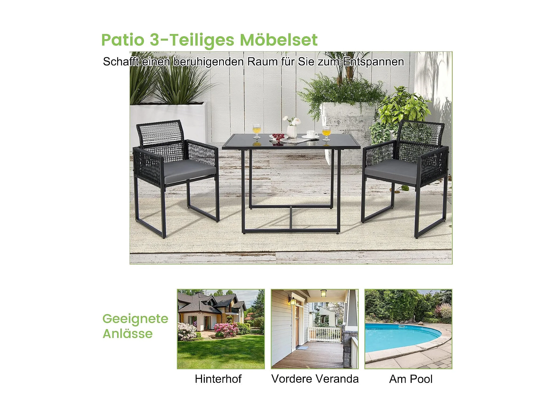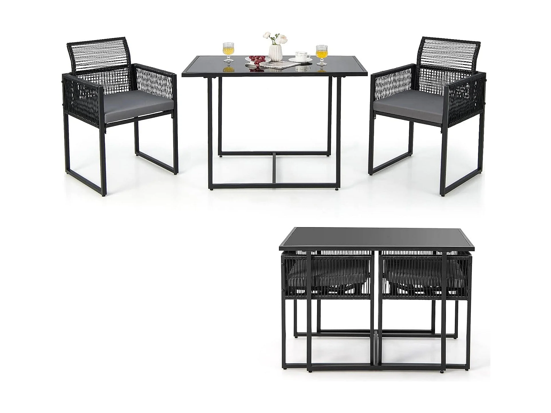 3-delige tuintafelset met 2 rotan tuinstoelen,bistroset incl.zitkussens,tuingarnituur,balkonset, ruimtebesparend, terrasmeubel, zitgroep voor balkon en tuinTI93877