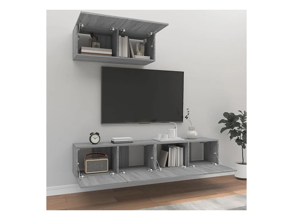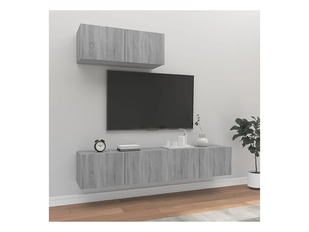 3-delige Tv-meubelset bewerkt hout grijs sonoma eikenkleurig NL829551