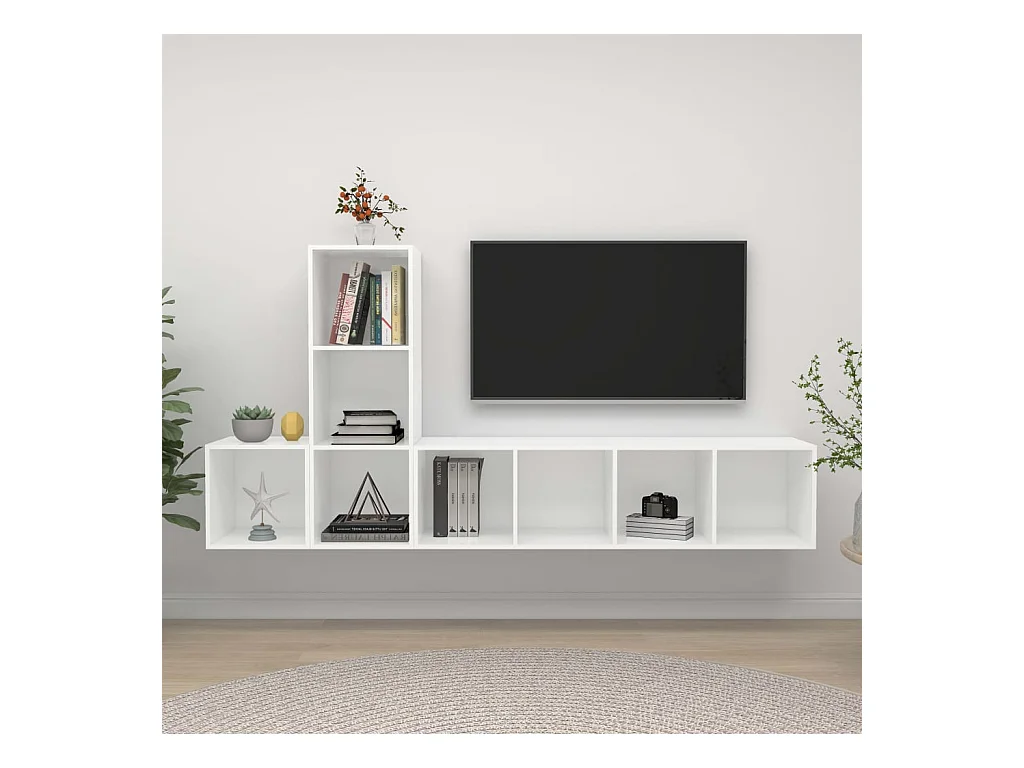 3-delige Tv-meubelset | Tv-Bank | TV-kast spaanplaat wit