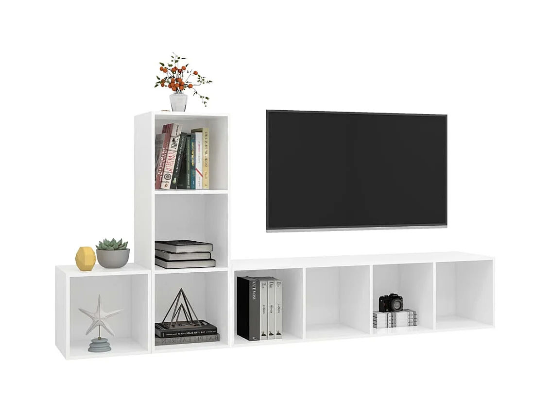 4-delige Tv-meubelset | Tv-Bank | TV-kast spaanplaat wit