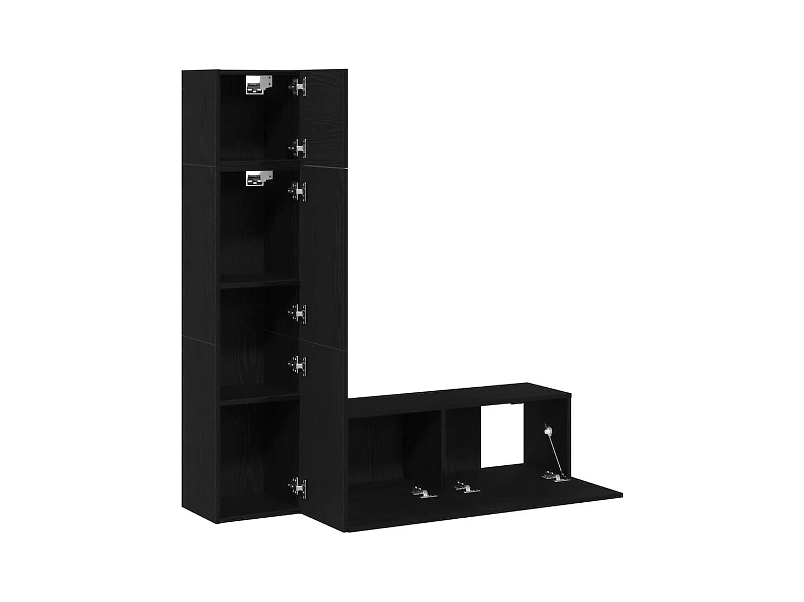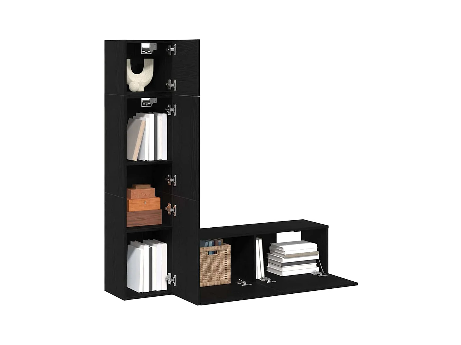 3-delige Wandmontage TV Eenheid Set in Zwart Eiken