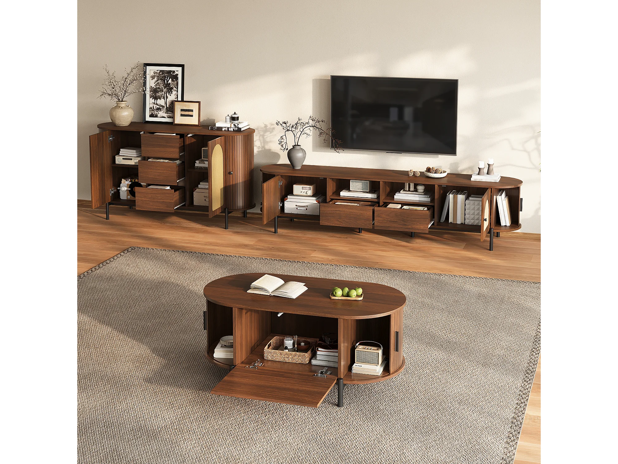 3-delige woonkamerset in rotanlook - salontafel + tv-meubel + dressoir - met deuren en lades - MDF - bruin