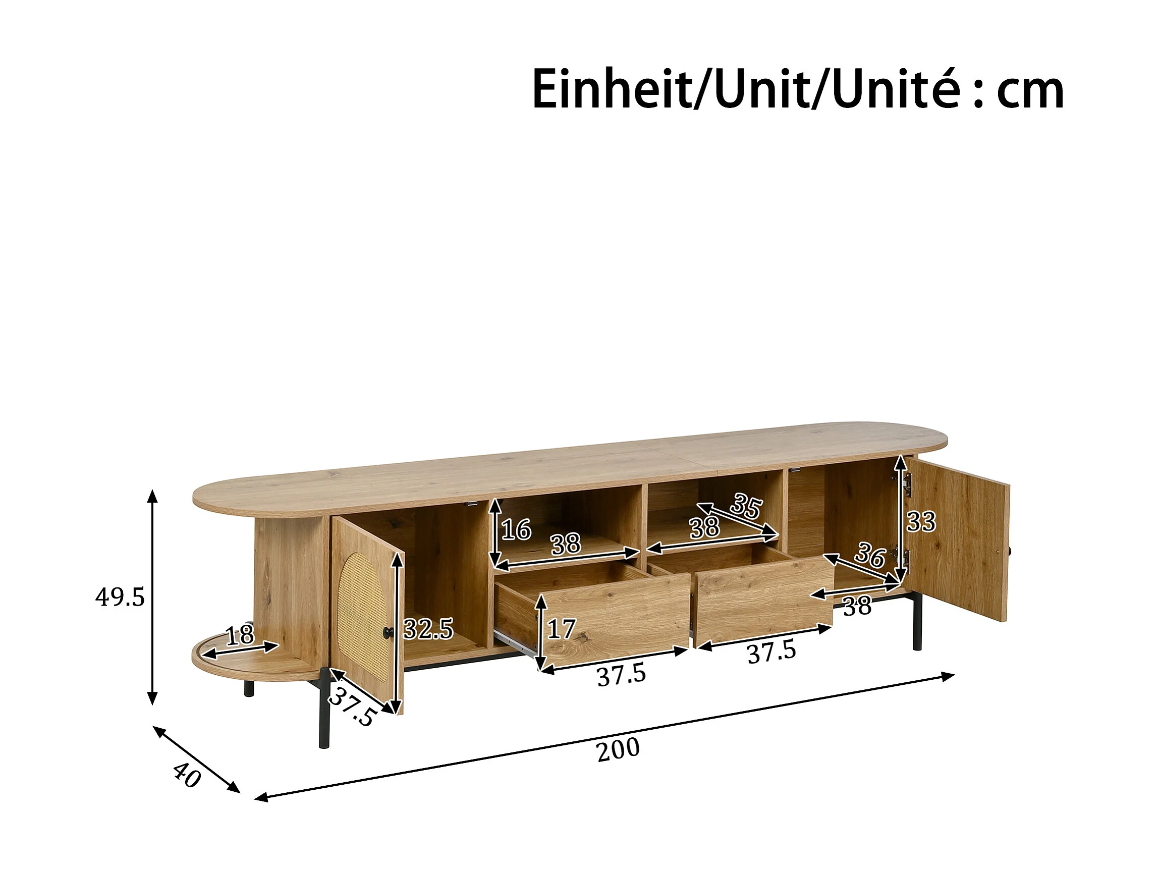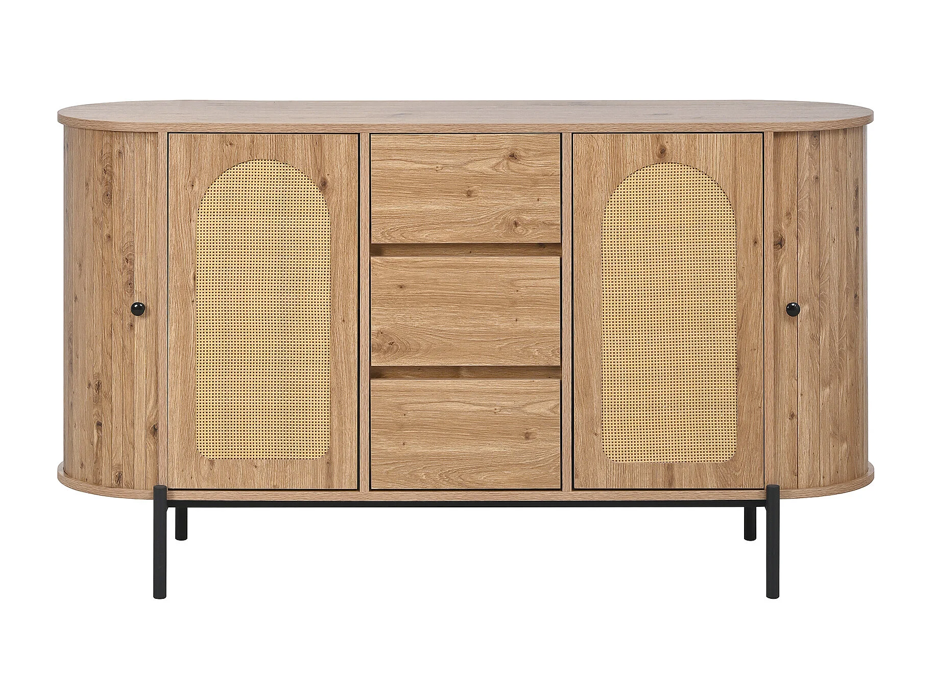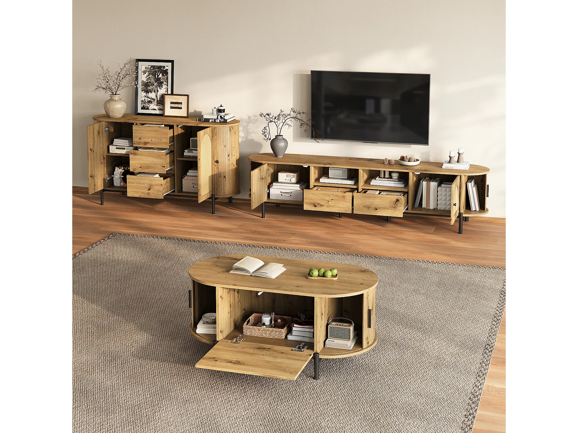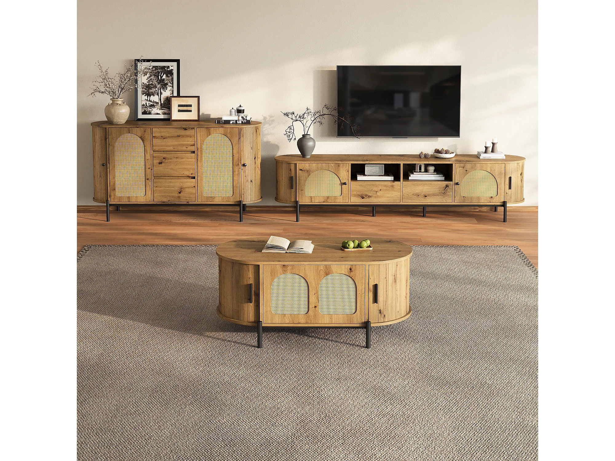 3-delige woonkamerset in rotanlook - salontafel + tv-meubel + dressoir - met deuren en lades - MDF - naturel