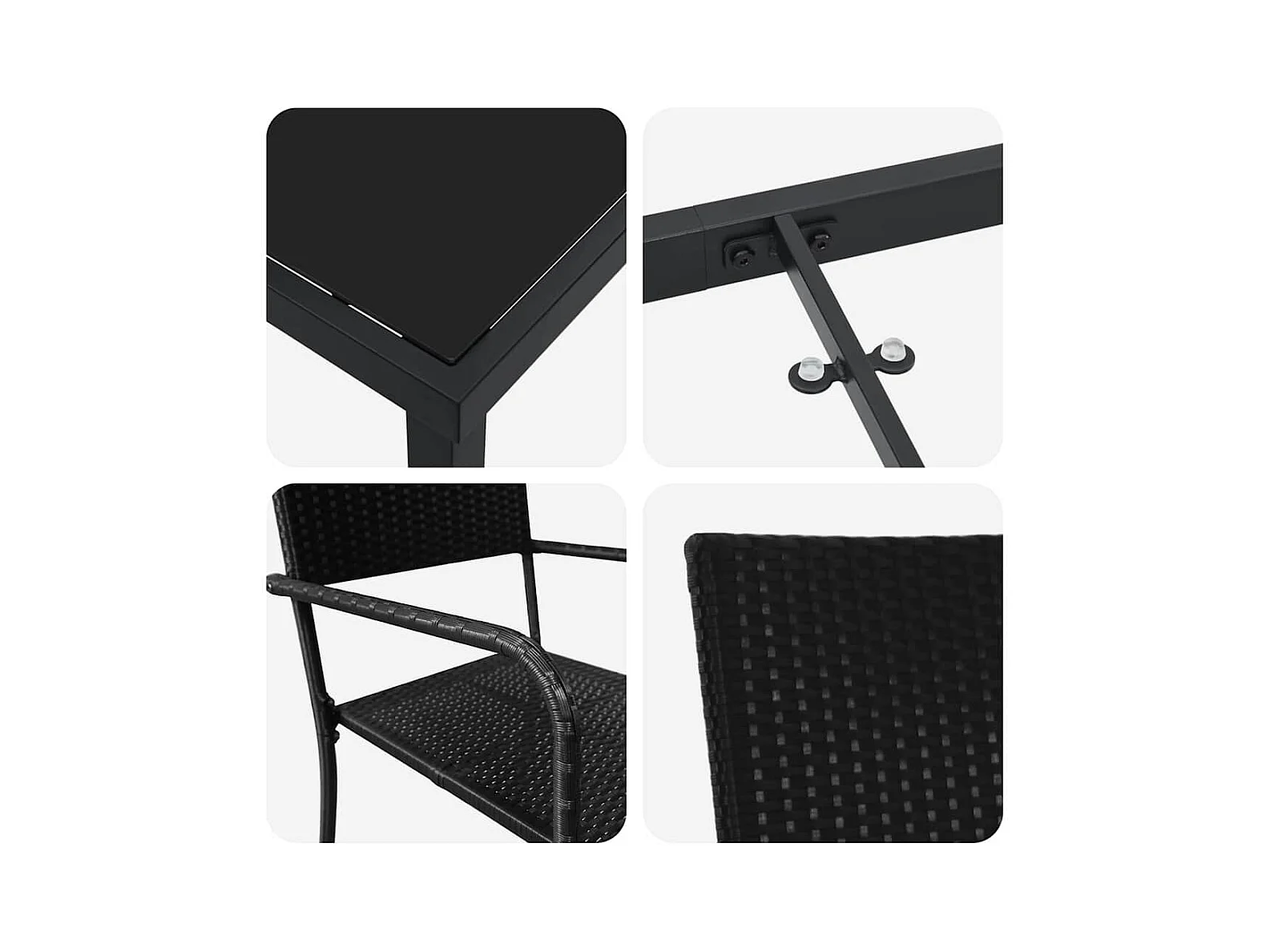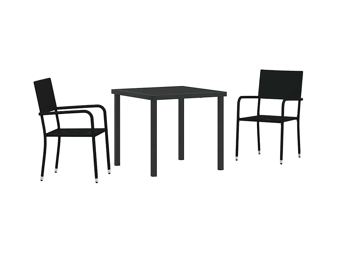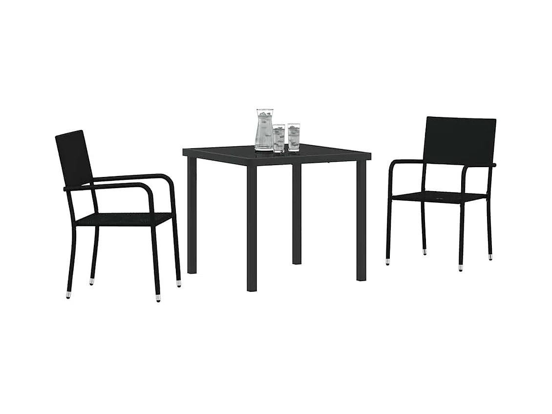 3-delige tuinset met zwarte kussens van synthetisch rotan
