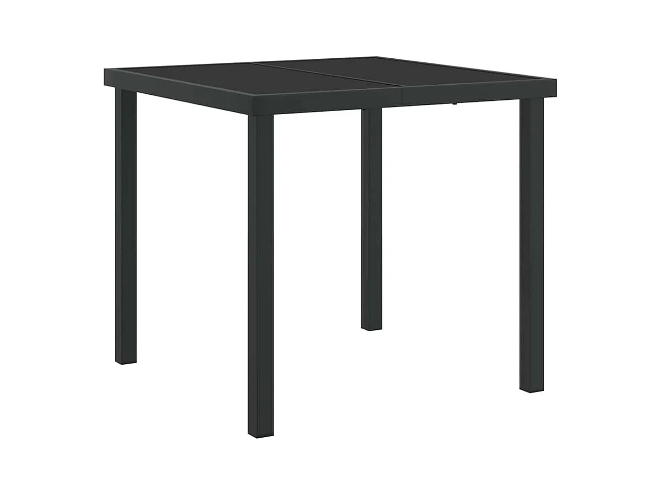 Tuintafel met glazen blad 55x55x37 cm poly rattan zwart