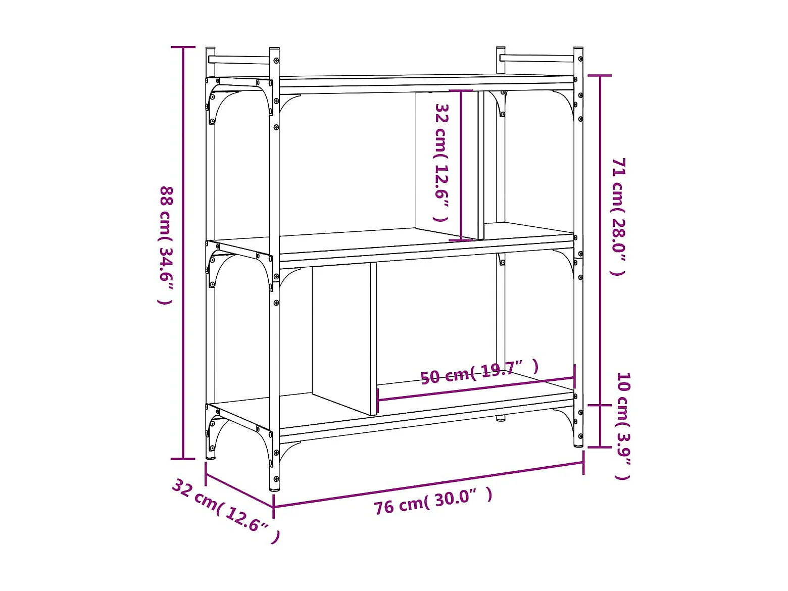 3-laags boekenkast gerookt eiken 76x32x88 cm bewerkt hout
