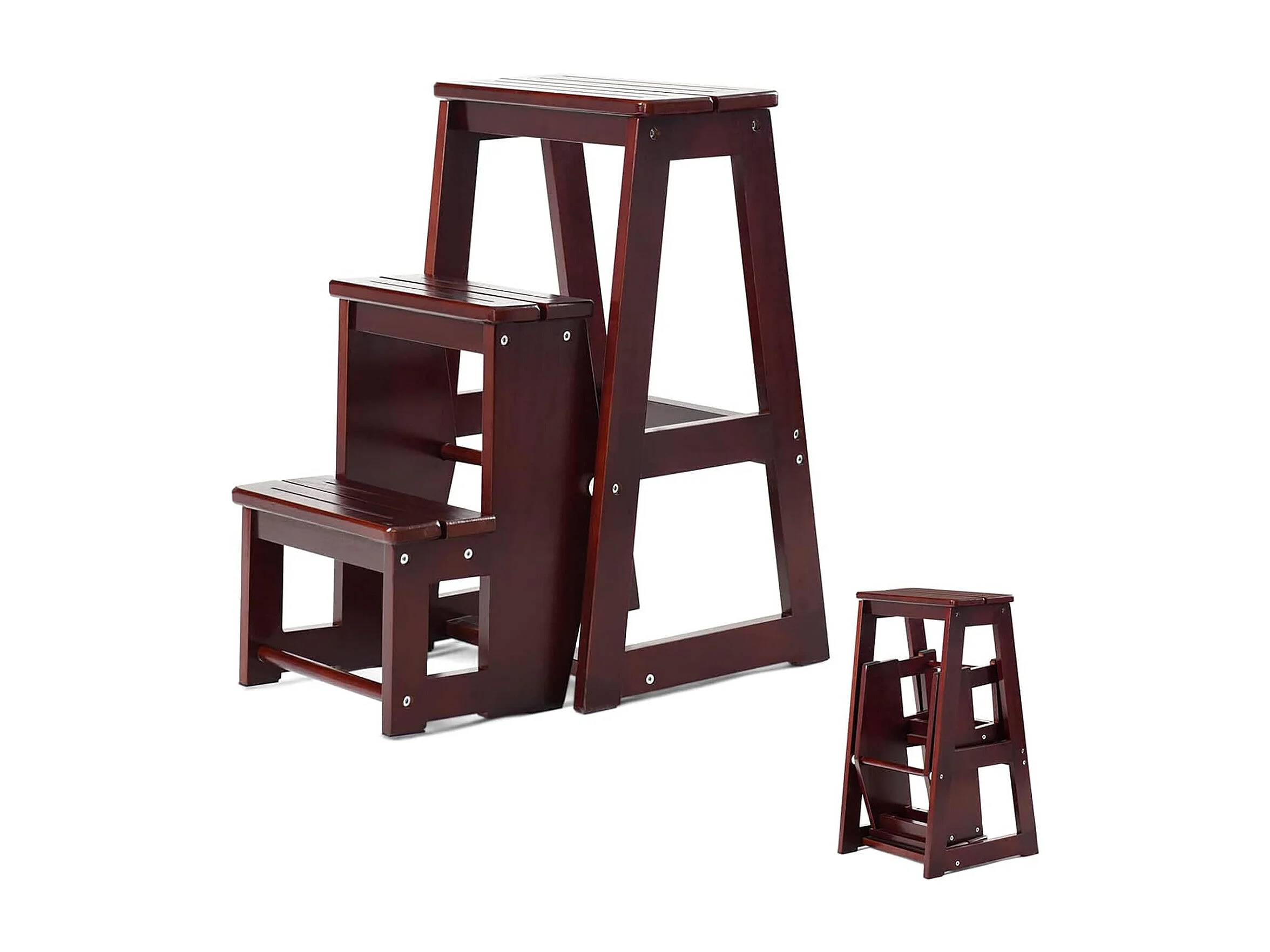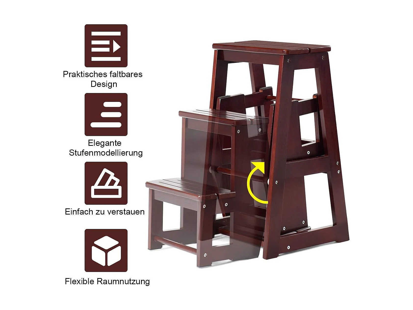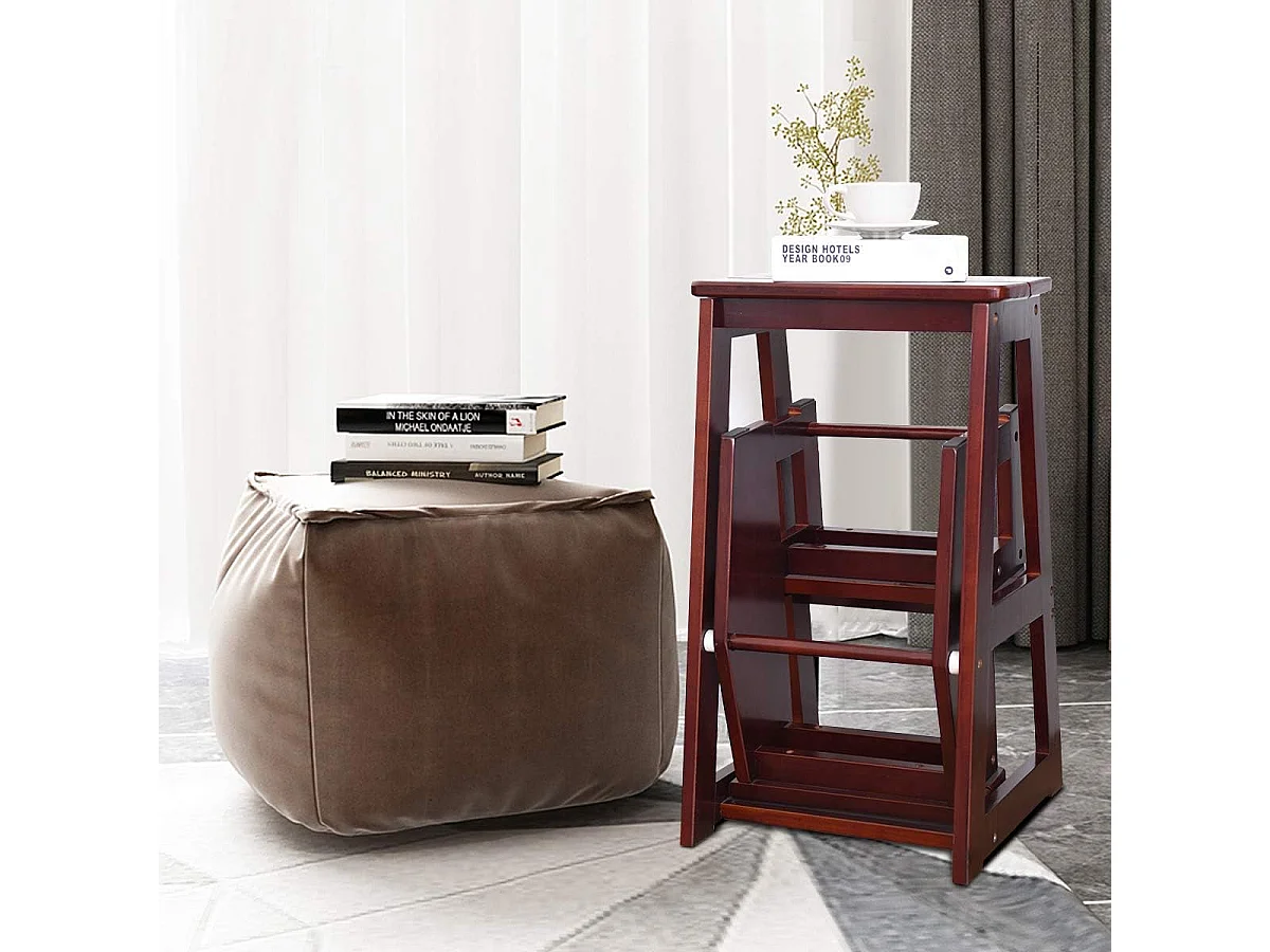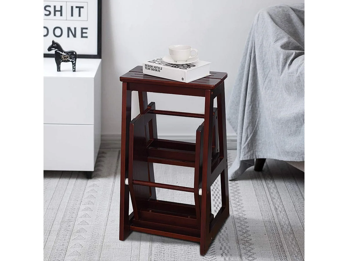 3-laags opklapbare opstapkruk Multifunctionele ladderstoel Zitbank Utiliteit, walnoot (Bruin)TI77221