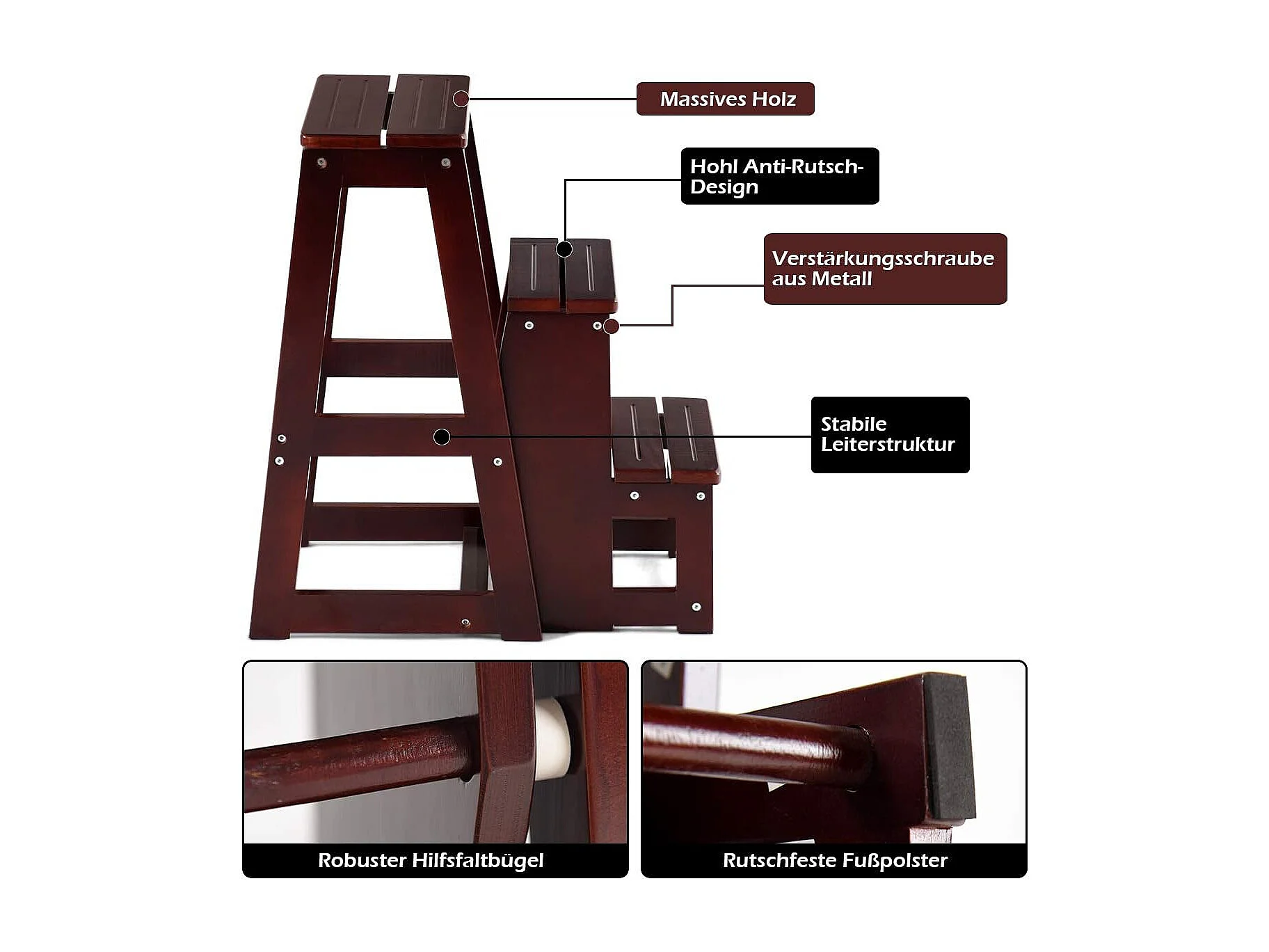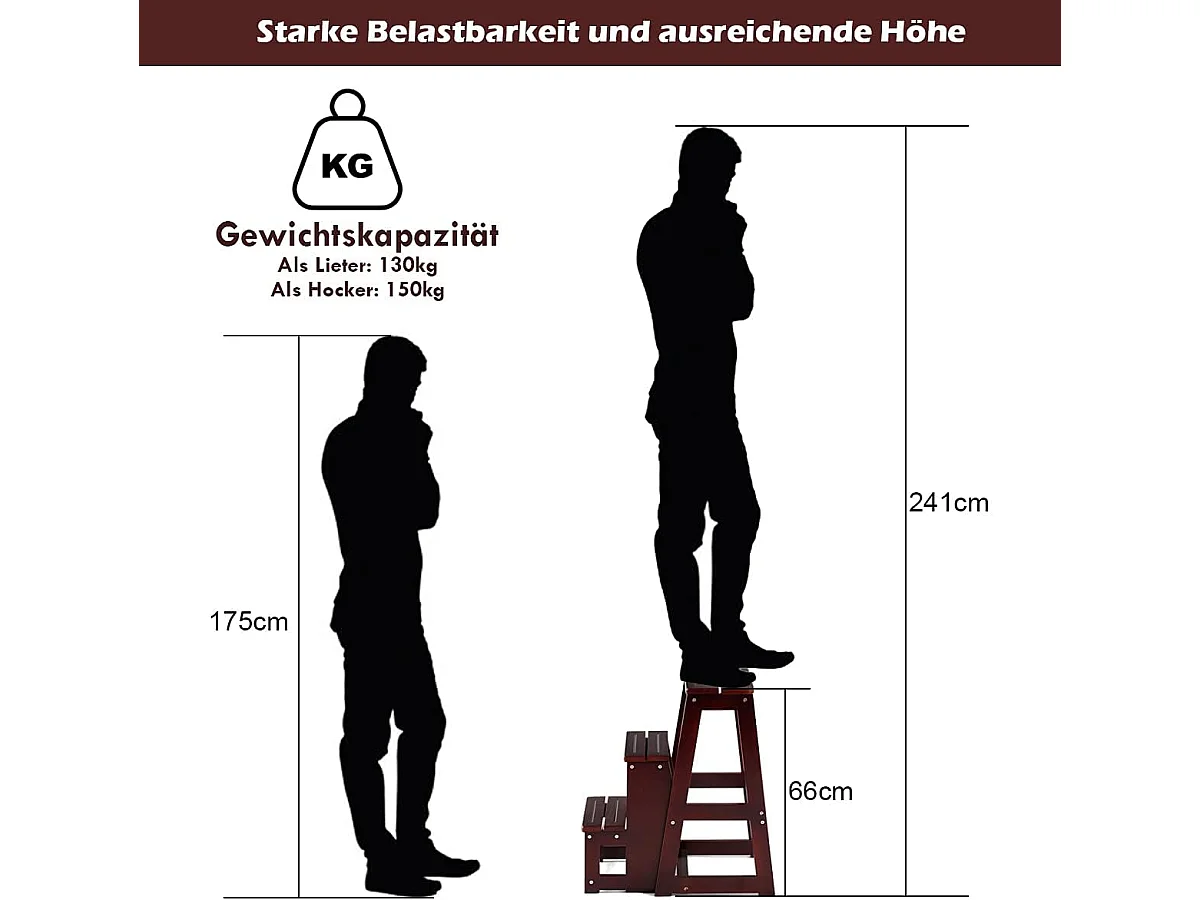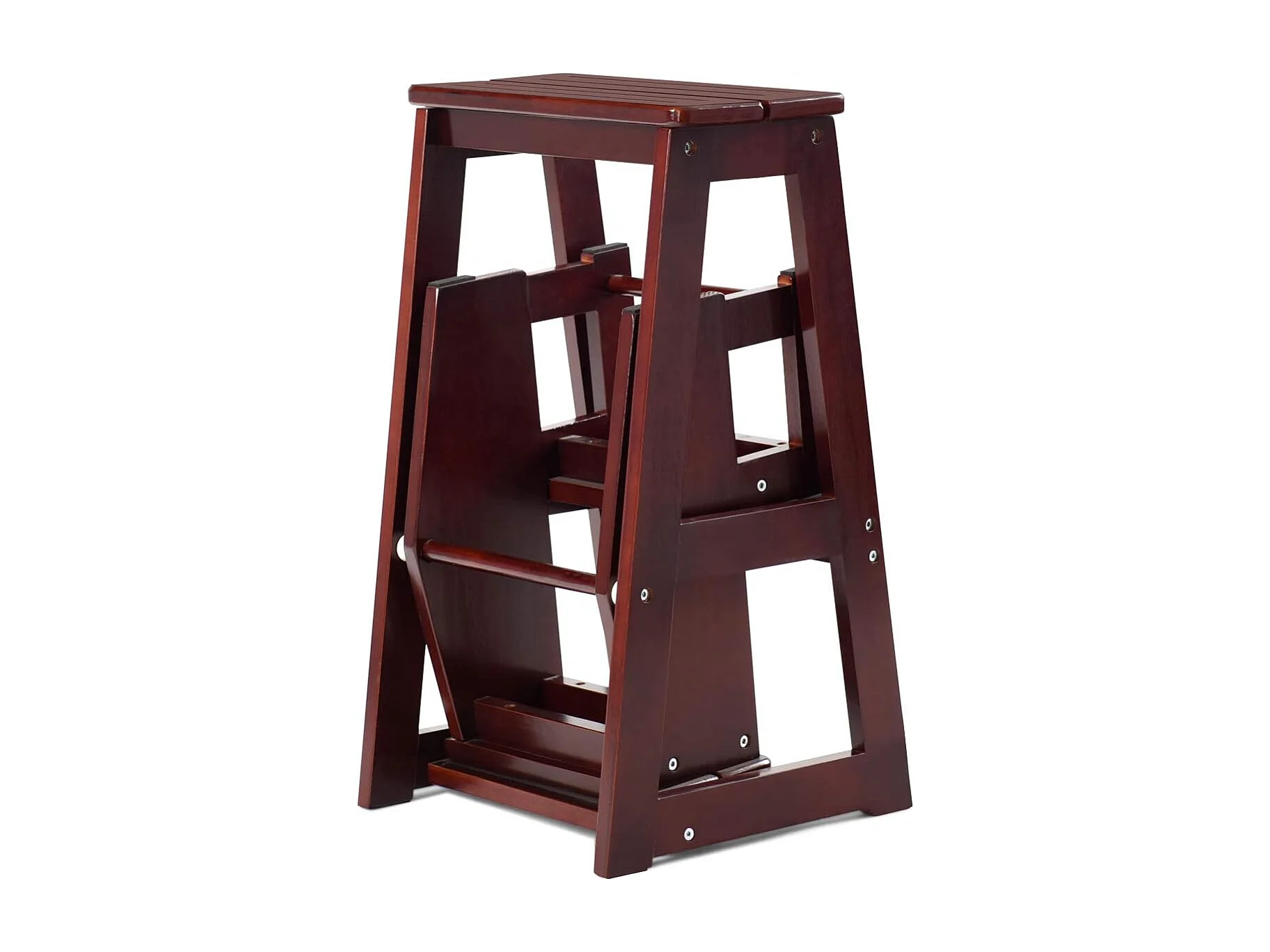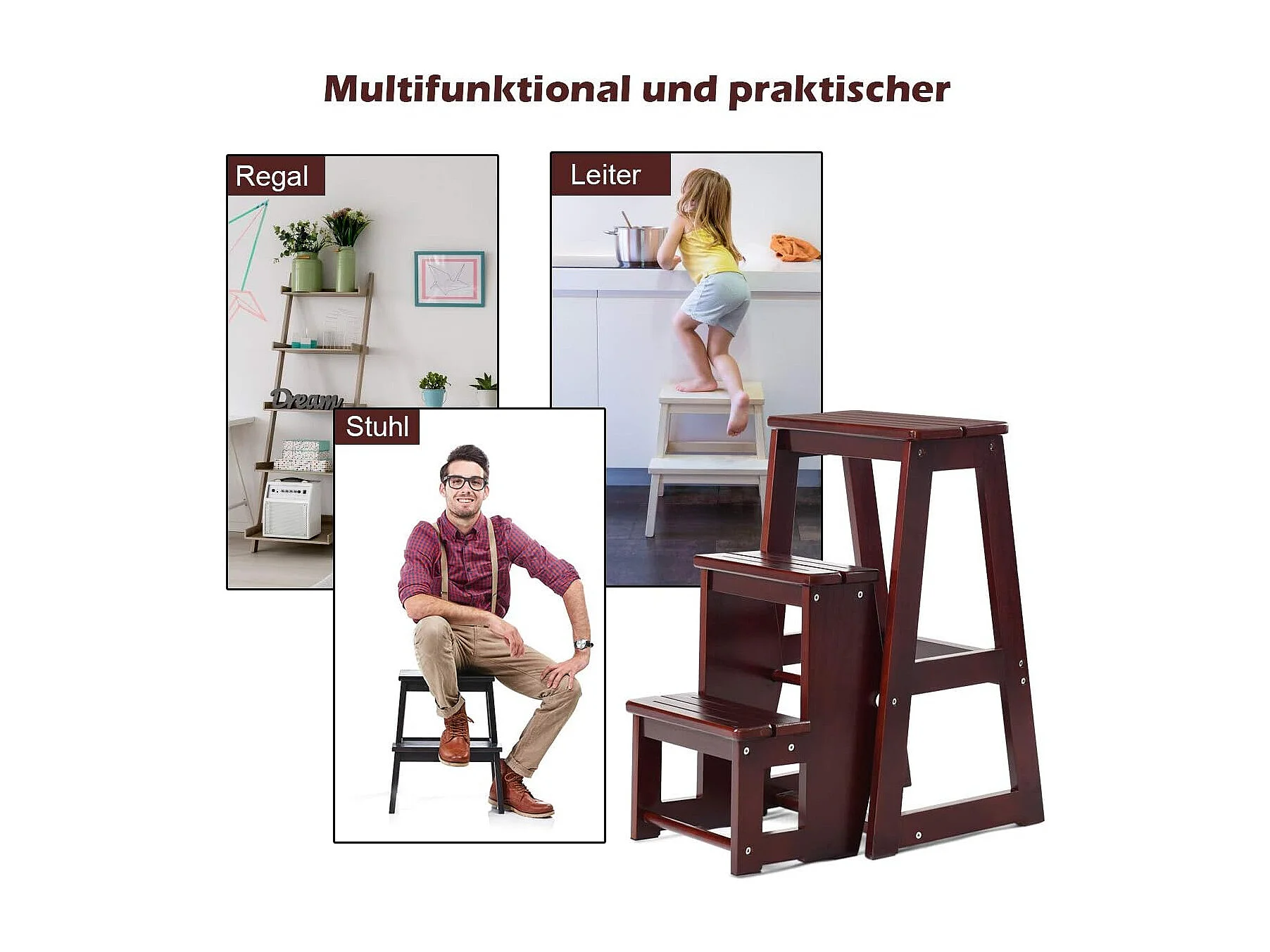3-laags opklapbare opstapkruk Multifunctionele ladderstoel Zitbank Utiliteit, walnoot (Bruin)TI77221